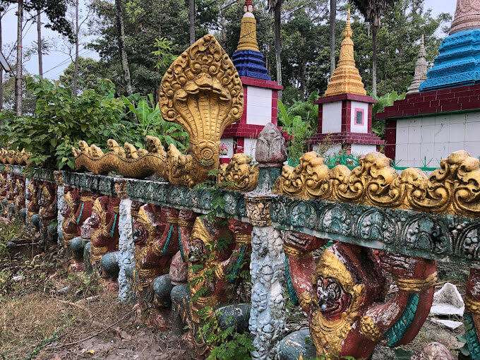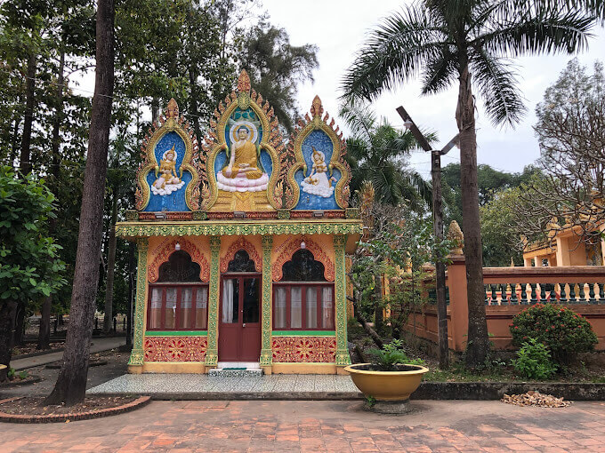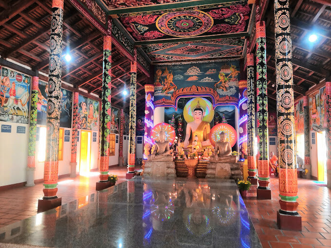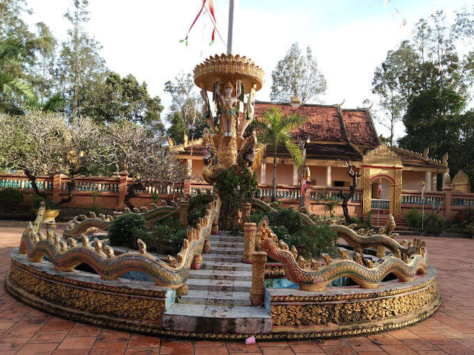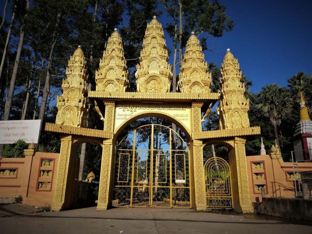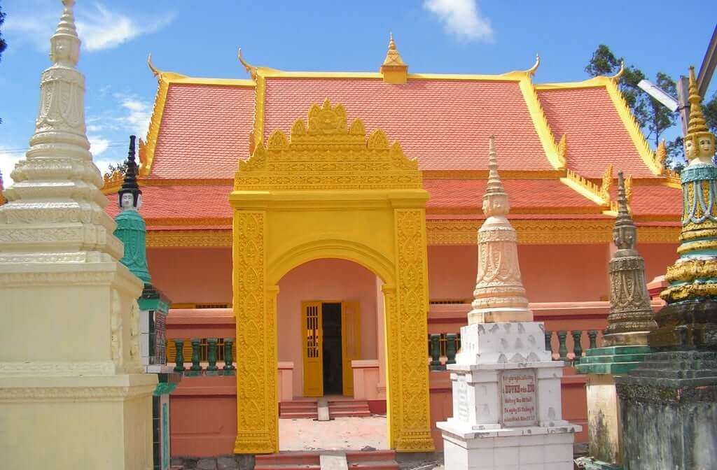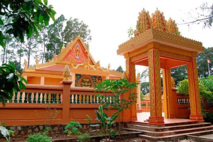 Phat Lon Pagoda is an old Khmer pagoda with the Buddhist name Ut Don Men Chi, currently located at 151 Quang Trung Street, Vinh Quang Ward, Rach Gia City. The pagoda was recognized by the Ministry of Culture, Sports and Tourism as a National Historical and Cultural Monument on December 28, 2001. Phat Lon Pagoda is one of 73 Theravada Buddhist pagodas of Kien Giang province that was formed and developed quite early around 1504 - 16th century. After three times changing location, from 1884 to present, the pagoda has current position. For more than 100 years, the pagoda has not only been a place to worship Buddha and a place for monks to practice, but also a place for traditional cultural activities of the Khmer ethnic people, a place to demonstrate the strong bond between the community and the community. Vietnamese peoples in living, studying, working, and fighting against foreign invaders to build and protect the Fatherland for many generations. In particular, there is a historical event that has been recorded in the pages of golden history: on August 11, 1848, Kien Giang's army and people coordinated with the forces of military region 4 to organize a large-scale battle in Soc Xoai. , destroy many enemies and collect many weapons. This was the second biggest victory after the battle of Tam Vu in the Mekong Delta at this stage in the resistance war against the French colonialists. In retaliation for this humiliating defeat, at 5:00 p.m. on the same day, the French took 32 revolutionary soldiers who were imprisoned by them at Ham Lon, Rach Gia to Phat Lon Pagoda, and opened fire en masse on the soldiers. revolution, after killing 32 people, they also wanted to shoot the heads of the monks in the temple and ransacked everywhere. When they left, the monks buried 32 revolutionary soldiers right behind the temple. Currently, this place has built a hate stele so that people will not forget the enemy's crimes. Phat Lon Pagoda not only has architectural and artistic value but also has historical value. For Khmer people, the pagoda is the only sacred space, so even though life is still difficult, people still contribute and contribute to building, restoring, and repairing a quite spacious pagoda. The pagoda has unique architecture clearly shown through decorative patterns, reliefs, and Buddha statues, all of which are lacquered and gilded: the four-faced statue of Ma Ha Prum, the statue of the god birds of Ma Ha Krut, the statue of the goddess , dragon and tiger statues, beast statues, monkey statues... Source: Kien Giang Tourism