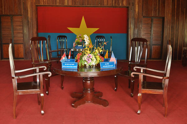 The historical site of the Provisional Revolutionary Government of the Republic of South Vietnam is a house in Loc Ninh Town, Loc Ninh District, Binh Phuoc Province, at the end of the Ho Chi Minh Road - the North-South strategic road. On April 7, 1972, Loc Ninh was completely liberated. This was the first district liberated in the entire South. Since then, Loc Ninh is the gathering place of Political, Military, Logistics agencies... Especially the House of Relations - Headquarters of the Provisional Revolutionary Government of the Republic of South Vietnam. The house was built in 1911, as the office of the French rubber company Xeo - Xo, to manage the exploitation of rubber latex in Loc Ninh. The house is built in the style of stilt houses of ethnic minorities, so people in the area still call it "Cao Can" House. During the Nguyen Hue campaign (1972), the house was completely destroyed. In March 1973, in response to the needs of the work situation on the diplomatic front, the Provisional Revolutionary Government of the Republic of South Vietnam agreed to choose the location of the foundation of the "Cao Cang" house to build the revolutionary headquarters with Design drawings by architect Huynh Tan Phat. The house was built to welcome domestic and foreign diplomatic delegations, so it is called "The House of Relations". After more than a month of construction, the grand and spacious project was completed, including a ground floor and a first floor. The ground floor is built of solid concrete, used for meetings, mitting and is also where cultural and artistic activities take place. The upper floor is built of wood, surrounded by railings designed in the style of a stateroom, with a "5-roof, 4-roof" corrugated iron roof painted red. In this room, in 1973, a four-way military conference between Vietnam and the United States took place; The four-party conference discussed the provisions signed in the Paris Agreement under the supervision of the ICCS International Committee, including four member countries: Poland, Canada, Hungary and Indonesia. During meetings, there is a clear division from the aisles, meeting seating positions and resting positions during breaks... are all arranged separately. Representatives of the four delegations sat in a large round table, the International Committee sat in a small round table, and four small tables in the four corners of the house were the seating positions of the four parties' attachés. All are under the flag of the National Front for the Liberation of South Vietnam. On both sides there are two stairs going up. Looking out from inside the house, the staircase on the right is the path of the Vietnam People's Army, the left is the path of the American military and the Republic of Vietnam. Choosing a square or round table for a meeting is also an issue of concern to all parties. When meeting at Camp David (Saigon) or meeting in Paris, the Four-Party Joint Military Committee used square or rectangular tables to sit at meetings, but when meeting at the House of Exchange, they chose round tables. Because a round table shows equality and respect between parties, but if it is a square or rectangular table, when one of the four parties stands up to speak in the meeting, it will be like that party is the chairman of the meeting. When using a round table, all parties are equal. The birth of Giao Te House has fulfilled its historical mission, being a testament to the defeat of American imperialism and its henchmen, in addition to the heroic and clever struggle of our army and people. on both military and diplomatic fronts in the struggle to protect national independence and unify the country. The Relics of the Provisional Revolutionary Government Headquarters of the Republic of South Vietnam (House of Relations) were recognized by the Ministry of Culture as a National Historical Monument on December 12, 1986. Source: Binh Phuoc Province Electronic Information Portal