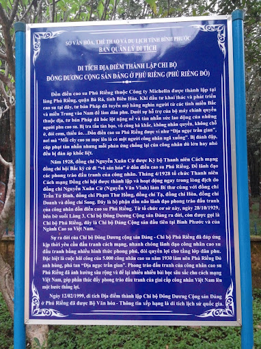 The site of the establishment of the Indochina Communist Party cell in Phu Rieng is located in Thuan Phu commune, Dong Phu district, Binh Phuoc province. Here, on October 28, 1929, the Indochina Communist Party Cell was established as the foundation for the later revolutionary movement of rubber workers in the Southeast region. Phu Rieng rubber plantation belonging to Michelin Company was established in Phu Rieng village, Ba Ra district, Bien Hoa province (now belongs to Dong Phu Rubber Joint Stock Company). When investing in exploiting and developing rubber here, French capitalists recruited hundreds of thousands of people from the Northern and Central provinces to the South to work as laborers. With the support of the colonial government apparatus, French capitalists severely and cruelly exploited the labor of the laborers such as: beatings, salary cuts, torture, harsh working regimes, homeless, hungry, lacking clothes, living in "hell on earth", causing "For every rubber tree that grows, a worker falls". The workers only knew how to react in spontaneous ways such as cutting down rubber trees, protesting, fleeing... but all were severely suppressed. Faced with that situation, in 1928, comrade Nguyen Xuan Cu was sent by the Revolutionary Youth Committee of the Northern Association to "proletarianize" the Phu Rieng rubber plantation. To lead the workers' struggle movements, in April 1928, the Revolutionary Youth Comrades' Association was established with comrade Nguyen Xuan Cu as Secretary along with comrade Tran Tu Binh and comrade Pham Thu. Hong, comrade Ta, comrade Hoa, comrade Doanh and comrade Song. This is the headquarters leading the fighting activities of Phu Rieng rubber workers. From this grassroots organization, implementing the policy of developing the Party organization, on October 28, 1929, on the banks of the Village 3 stream, the Indochina Communist Party Party Cell, also known as the Phu Rieng Party Cell, was established, led by Comrade Nguyen Xuan Cu as Secretary. This is the first Communist Party cell of Binh Phuoc province and also the first cell of the Vietnamese rubber industry. The birth of the Indochina Communist Party Cell - Phu Rieng Party Cell promptly responded to the requirements of revolutionary struggle, quickly leading rubber workers to demand their rights through different, organized forms of struggle. organizations and plans in many forms. Among them, a typical strike of 5,000 rubber workers in 1930 created the heroic "Phu Rieng Do", destroying "Hell on Earth". After 8 days (from January 30, 1930 to February 6, 1930), the struggle won a great victory, with far-reaching influence, contributing to promoting the struggle movement of the Vietnamese working class. a victorious step and a historical milestone in the country's revolutionary struggle. The site of the establishment of the Indochina Communist Party cell in Phu Rieng is a place that marks the value and importance of the correct policy and the strong development process of the Party organization. Today, the old "Phu Rieng Do" has become a vast land of rubber, contributing "white gold" to building and creating an increasingly rich and beautiful hometown of Binh Phuoc. In 1985, Dong Phu Rubber Joint Stock Company built a memorial. In 2019, Vietnam Rubber Industry Group invested in embellishing the monument. The location of the establishment of the Indochina Communist Party Cell in Phu Rieng more spacious. Today, the relic of the founding site of the Indochina Communist Party cell in Phu Rieng is a place to review the tradition of revolutionary struggle, affirming and enhancing pride in the contributions of rubber workers in particular. in particular, the working class, the army and people of Binh Phuoc in general for the cause of national independence. With those typical historical values, on February 12, 1999, the site of the establishment of the Indochina Communist Party Cell in Phu Rieng was decided by the Minister of Culture and Information to be classified as a historical relic. nation. Source: Binh Phuoc Provincial Museum Electronic Information Page