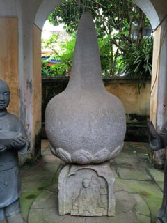 Lady Mia (1580 - 1648) Her real name is Tran Thi Cu, born on May 5, Canh Thin year (1580) in Mua village, Thien Thi canton, former Khoai Chau district, now in Cong Vu village, Vu Xa commune, Kim Dong district, Hung Yen province. Legend has it that one day, Lord Trinh Trang's chariot passed through this area, bustling with thrones and palanquins, flags filling the sky, trumpets and drums resounding, and villagers excitedly went to see. A girl cutting grass next to the main road still wore it as if she didn't know anything. When the palanquin passed, she did not look up, her hands quickly pulled the sickle to gather grass, her mouth sang softly and clearly: The hand holds the half-moon One hundred herbs are in my hands The soldiers were surprised, the singing became louder and the palanquin slowly stopped. God raised the curtain and saw a girl with stunning beauty. She responded intelligently, knowing that this was a strange woman. God ordered her to be brought back to Thang Long capital, then given her national status and changed her name to Trinh Thi Ngoc Am. She helped the lord oversee the studies in the palace of the concubines and beauties, strengthening the solidarity between the lord and the Le court. She gave birth to a daughter, Trinh Thi Minh, who was given 4 gold plates and 1 silver plate by God. Not long after, Princess Thuy Minh passed away. She was so sad that she asked to become a monk at the village temple. The Lord loved his talented wife very much, so he opened a branch river from the Cuu An River to run through the Silk village to transport precious items to build the tower. Every day, she went up to the tower to pray for the lord's palace in Thang Long. She spent money to help people clear the land and open rivers to bring water to the fields. She is rich in virtue and helps people and prays to Buddha to bless the people. She herself asked to establish and repair pagodas around the area and popularize Buddhist offerings. Not only did she make a great contribution to restoring the pagoda, but she also spent money with the people of 13 villages to build communal houses. Ms. Trinh Thi Ngoc Am died at the age of 68, people worshiped her as a god and built a temple right in her hometown. Mua Temple was built in the 17th century and restored during the Nguyen Dynasty. The architecture is in the style of the letter "Nhi". The Tam Quan gate is quite massive, with two rows of parallel sentences: Talent and beauty are everywhere in the lord's palace Complete love for the homeland Next to it is a small office building with a green stone statue, with a pot-bellied figure worshiped by an incense bowl also made of green stone touching the kneeling feet, with three ears and a tiger face. In front of the temple door is a stele erected in 1634 with the inscription: Princess Mua Trinh Thi Ngoc Am, the first concubine of Lord Trinh Trang's palace. The second stele erected in 1650 recognized her contributions to the villagers in building pagodas, communal houses, temples, shrines... In the center of the main hall, there is a stone incense burner, carved into three reliefs: the middle one is embossed with a clear image, the two sides are carved with "Dragon water", the surrounding is carved with a stylized water wave pattern, carrying the style of the temple. Later Le distance. On the two pillars of the great altar, there are two parallel lines praising her virtues: Highly talented, dignified, and powerful in controlling the mountains and rivers Accumulating virtue as a monk, the lord also devotes himself to Buddhism The harem has a statue of Princess Mua. In 1634, Lord Trinh Trang had a statue of her carved in stone while she was alive. The life-sized statue sits on a lotus throne, with a crown on its head, embossed with the image of Buddha Tathagata, large flowers in its ears, and legs folded like a person meditating. In front of the princess statue is a stone statue of the Duke, sitting cross-legged and wearing a robe. The two temples on both sides worship statues of Thi Ve and Kim Dong worshiping the princess, their bodies embossed with folded clothes. Behind the harem is a nine-grade lotus court, with a lotus flower base and a statue of the princess in her old age. On June 8, 1963, while working on irrigation for the Ngang Cau River, the citizen dug up 4 gold plates and 1 silver plate from Lord Trinh Trang as a reward for his daughter. At the bottom of one plate was an inscription. "Princess Thuy Minh, golden princess, eight-star princess" (my father's silver cup given to me, Princess Thuy Minh). From the above values, Ba Chua Mua Temple was ranked by the Ministry of Culture and Information as a National "Art" relic No. 2233-Decision/Ministry of Culture and Sports on June 26, 1995. In particular, on December 31, 2020, the Prime Minister issued Decision No. 2283/Quyet Dinh - Prime Minister, recognizing the collection of Cong Vu lotus gold plates (Mua temple, Vu Xa commune) dating back to the century XI – XII are National Treasures. Source Electronic information portal of Kim Dong district, Hung Yen province.