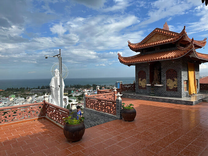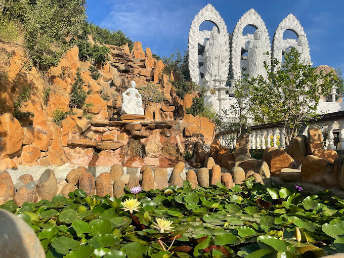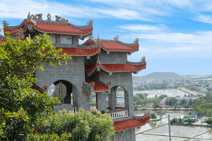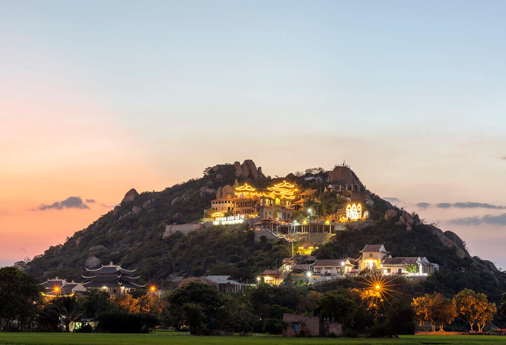 Trung Son 고대 탑은 1973년 Ninh Thuan성 Ninh Hai현의 Da Chong 산(Phung Hoang 산) 유적지에 Thich Buu Hien 승려가 세운 기념비적인 건축 단지입니다. 처음에 이 탑은 단순한 산 위의 불교 사원으로, 부히엔(Buu Hien) 스님이 매일 수행 장소로 사용했던 곳이자, 친척과 불교도들이 방문하여 부처님께 기도하고 평화를 기원하는 장소였습니다. 점차적으로 스님은 작은 오두막을 확장하고, 부처를 참배할 때 가까운 곳과 먼 곳의 친척과 불자들이 휴식을 취하고 풍경을 즐길 수 있는 장소로 추가 물품과 미니어처를 추가했습니다. 틱부히엔(Thich Buu Hien) 스님의 삶을 통해 틱탐뜨엉(Thich Tam Tuong) 스님의 삶까지. 사찰은 삼문, 본당, 종당 등 많은 항목을 포함하여 확장된 면적과 웅장한 규모로 지어졌습니다. 2012년에는 예산 제약으로 탑이 본체 항목만 먼저 완성했습니다. 사찰, 조사, 안마당, 오르락내리락하는 삼문계단... 삼문, 소경, 야외 불상과 보살상을 모시는 구역... 아직 완성단계에 있습니다. . 산간지형에 건축된 탓에 정전, 본당, 대청, 삼문, 조당 등을 구분하기 어렵다. 그렇기 때문에 전체적인 탑 프로젝트는 독특한 건축적 모티브로 생동감을 만들어낼 뿐만 아니라, 식별했을 때 복잡함을 만들어내기도 한다. 40년이 넘는 공사 끝에 완공됐다. 오늘날까지 이 탑에는 3대에 걸쳐 주지스님이 계십니다. 여기에는 Thich Buu Hien 존자(설립자), Thich Tam Truong 존자(두 번째 후계자이자 Thich Minh Tam 존자의 제자, Thich Buu Hien의 형), Thich Nguyen Minh 존자(현재 주지스님, Thich Tam Truong 존자의 제자)가 포함됩니다. . 일반적으로 Trung Son Pagoda의 주지스님들은 모두 "법종"의 유대를 갖고 있습니다. Trung Son Co Tu는 해발 60m 이상입니다. 탑으로 이어지는 길은 계단이 거의 500개에 달하는 가파른 수직 3계단 길입니다. 삼계단 길 끝으로 가면 가장 먼저 열리는 광경은 지금도 순수한 베트남 고대 건축 양식으로 지어지고 있는 삼문이다. 아직 완성되지는 않았지만 전체적으로 볼 때 Trung Son Co Tu 3개 출입구는 콘크리트, 강화 강철 및 녹색 돌로 만든 재료를 사용하여 견고하고 내구성이 있는 대규모 프로젝트입니다. 세 개의 문을 지나 계속 올라가면 아래의 테라스가 나옵니다. 하이라이트는 Ly Tran 왕조의 많은 관상용 나무와 한 쌍의 위엄 있고 강력한 용입니다. 테라스에서 계단을 올라가면 마당, 본당, 조당, 여관 등을 포함한 복합건축물이 있는데... 주지스님이 3대에 걸쳐 지은 건물이다. 고대 Trung Son Pagoda는 두 개의 Zen 탑 Truc Lam Vien Ngo와 Trung Khanh 탑의 To 공동 주택이 있는 매우 신성한 장소로도 유명합니다. 이 수렴은 하늘과 땅의 영적 에너지의 땅을 나타냅니다. 출처: Ninh Thuan 관광청