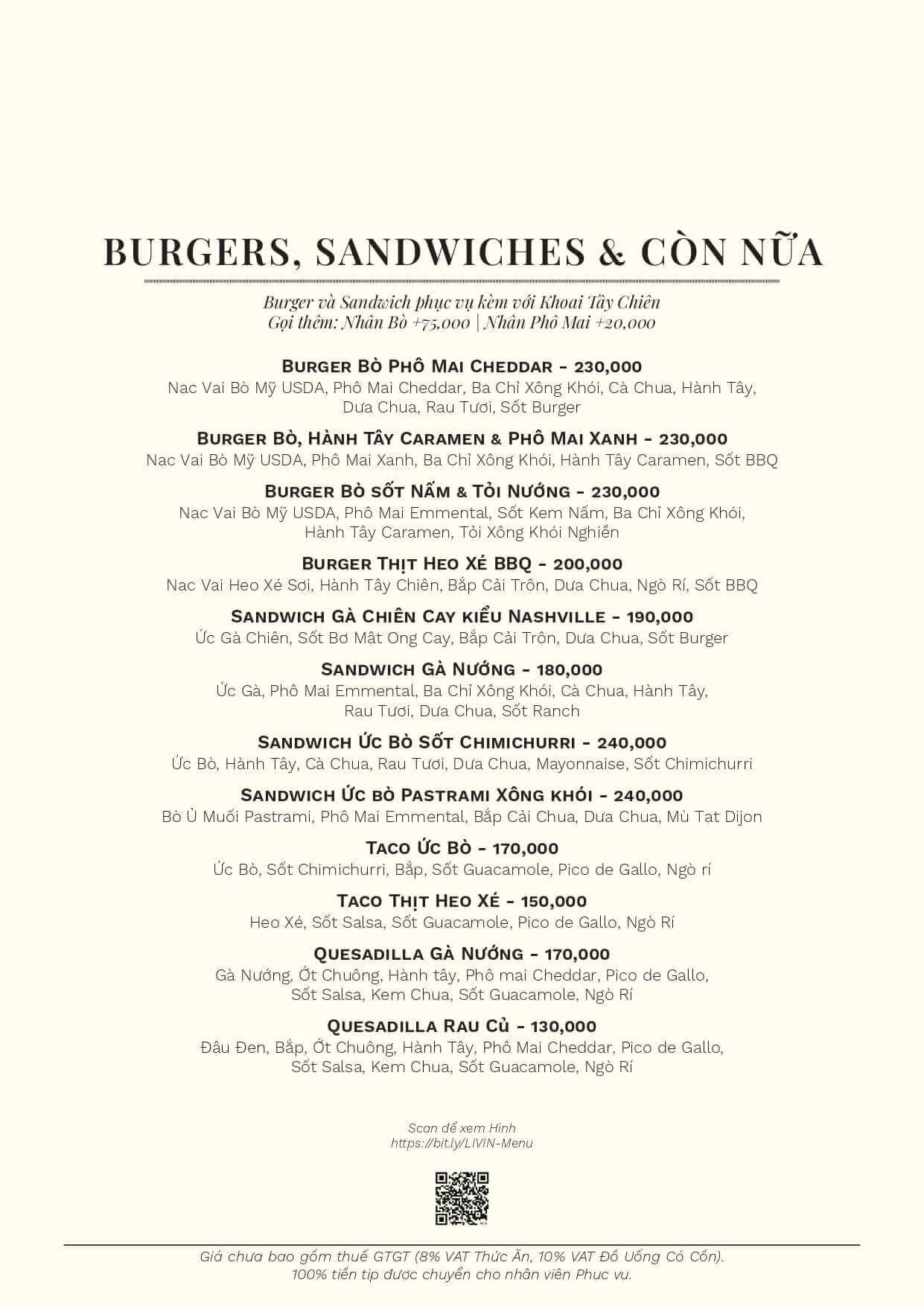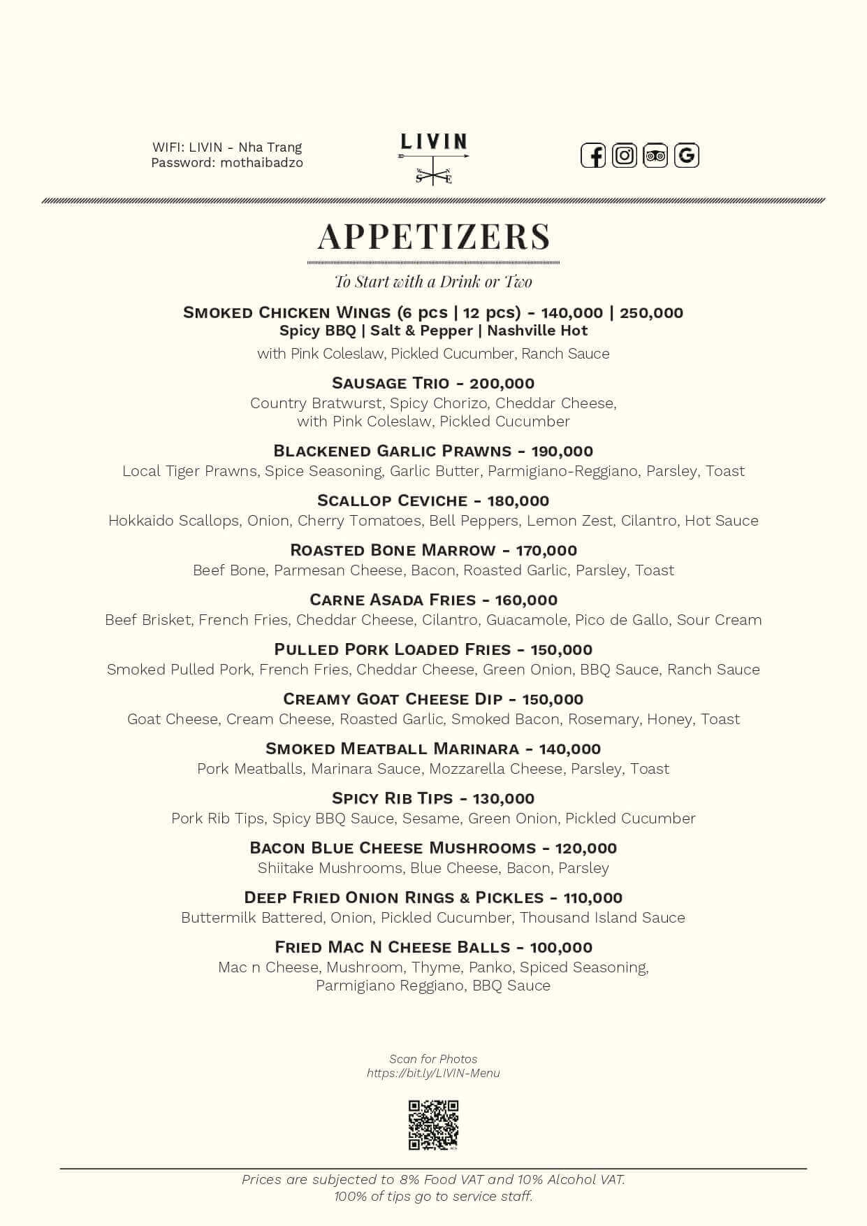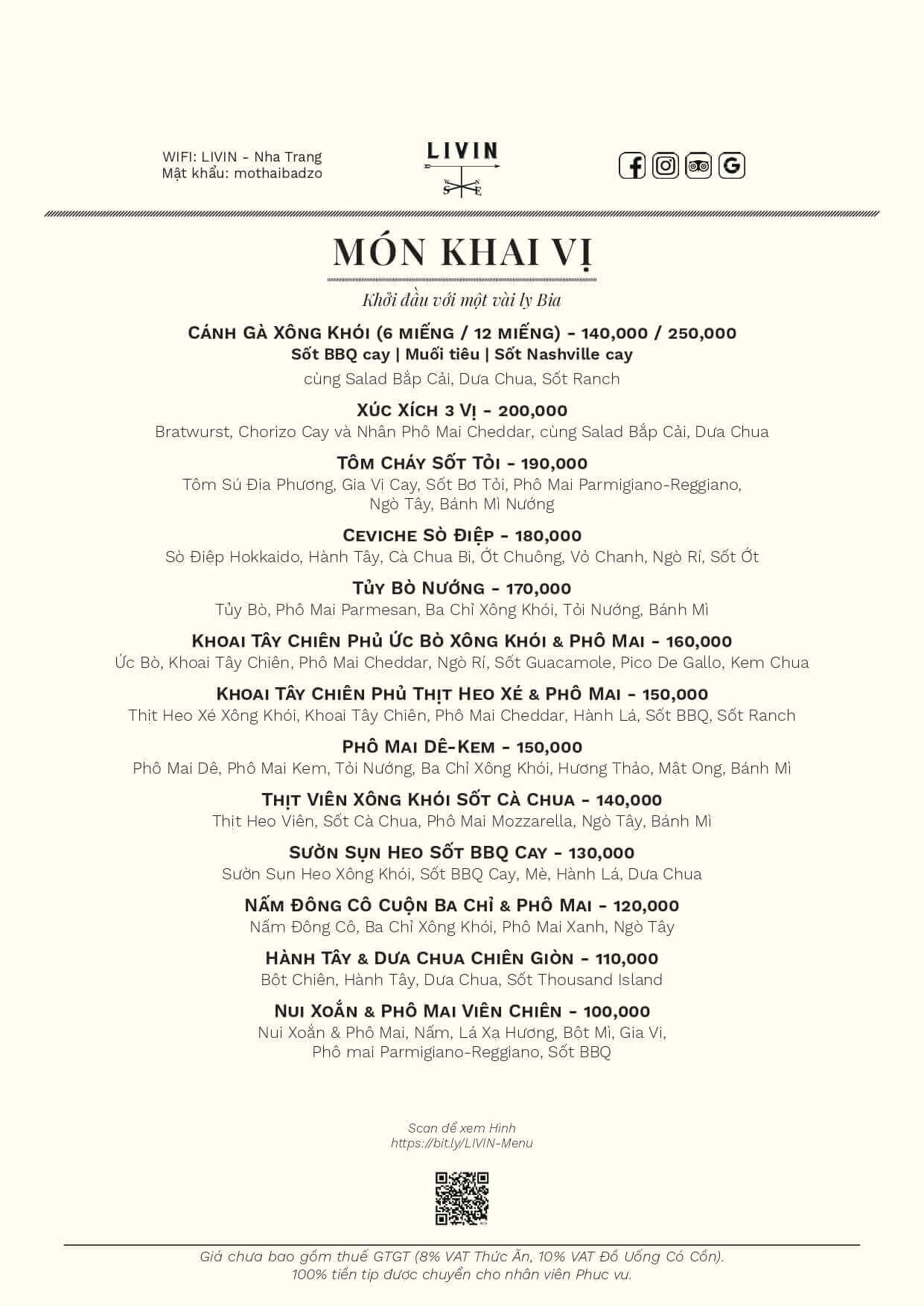 2015 년에 설립 된 Livin -Nha Trang은 미국 스타일 그릴의 표준에 따라 인기있는 레스토랑입니다. 전통, 문화 및 혁신의 균형; 우리는 기억에 남는 요리 경험을 나누고, 영감을주고, 창조하기를 희망합니다. 우리의 사명은 고객에게 진정한적이고 맛있고 멋진 경험을 제공하는 것입니다.