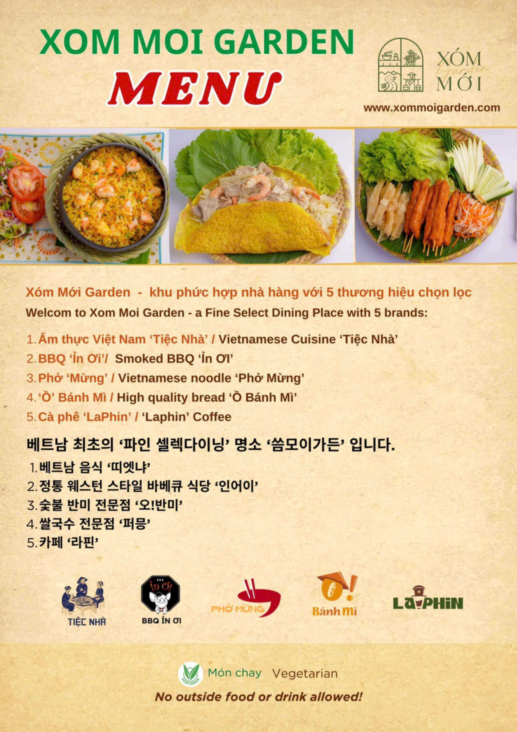 1500m2가 넘는 레스토랑 단지에는 엄선된 5개 브랜드가 있어 모든 고객의 취향을 만족시킵니다. - 베트남 쌀 "하우스 파티" - 바비큐 "인오이" - 라핀 커피 - 포 뭉 - 오! 빵