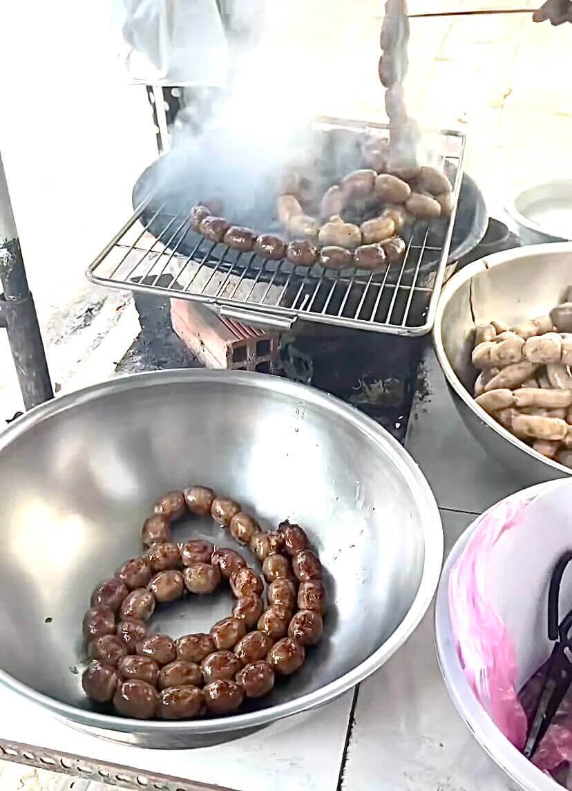Tung lò mò còn được gọi là lạp xưởng bò. Khác với các loại lạp xưởng thông thường,tung lò mò được chế biến hoàn toàn bằng thịt bò,sở hữu hương vị độc đáo. Món này dù chiên bằng nước hay nướng than hoa đều dai giòn,thơm ngon,hợp khẩu vị của nhiều người.