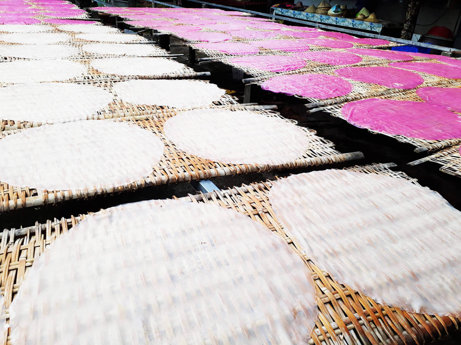 Stepping into the noodle factory feels like entering a completely different world,where pristine white grains of rice are transformed into deliciously chewy noodles. Each step is meticulously carried out by the skilled hands of experienced craftsmen.