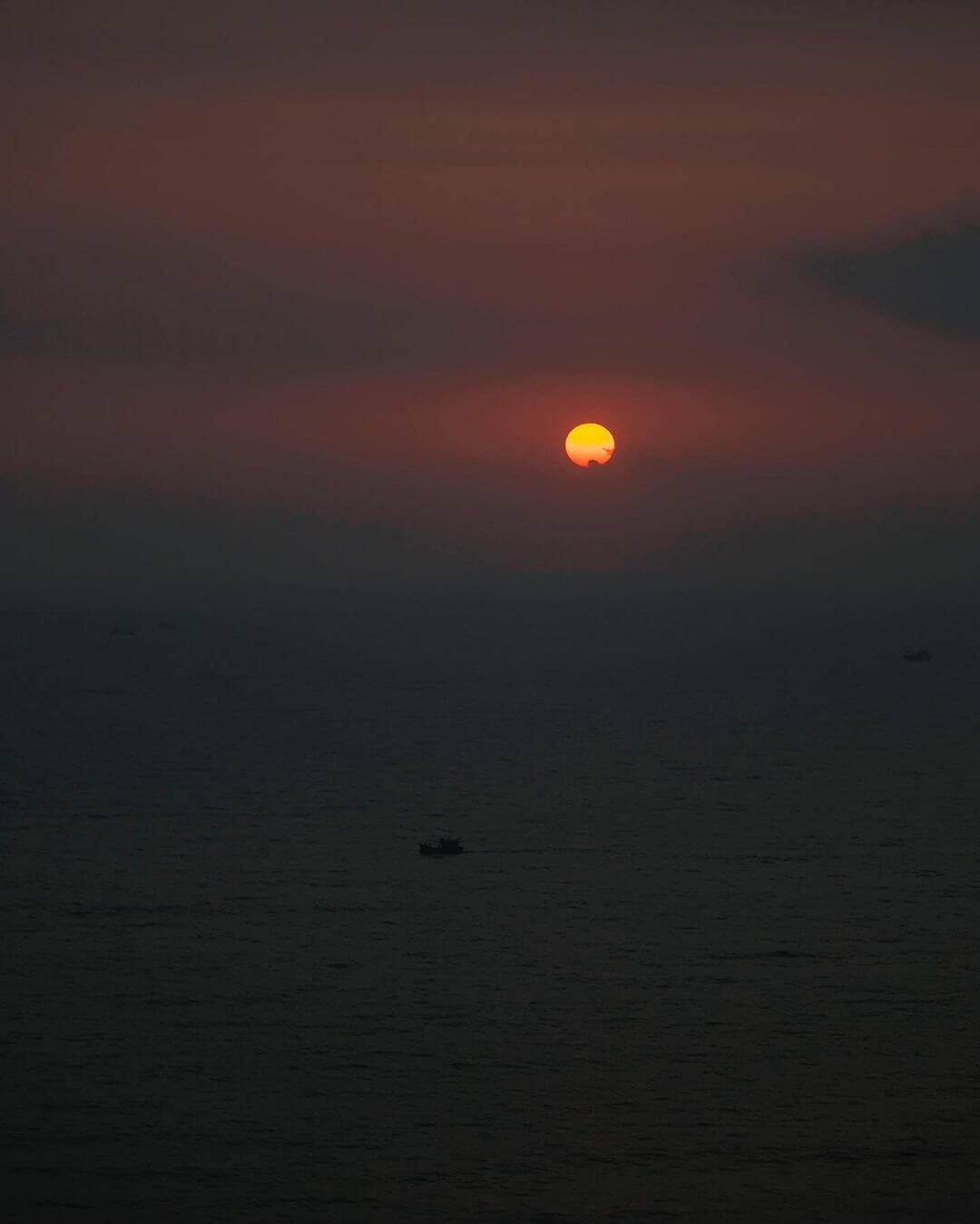 Along with the peaceful waves of Bai Mon,the mountain branch of Mui Dien carrying the distant lighthouse,the sunrise was like the final piece completing a perfect natural painting. The sun gradually rose higher,reflecting a series of light beams that looked like a golden path on the sea. Through the camera lens,the scenery seemed even more beautiful because it carried the emotions of the photographer. Especially,we were lucky to capture a rare image of the lighthouse still shining while the sun had already risen. Having photos of the first moments of dawn in Vietnam was an indescribable joy for us.