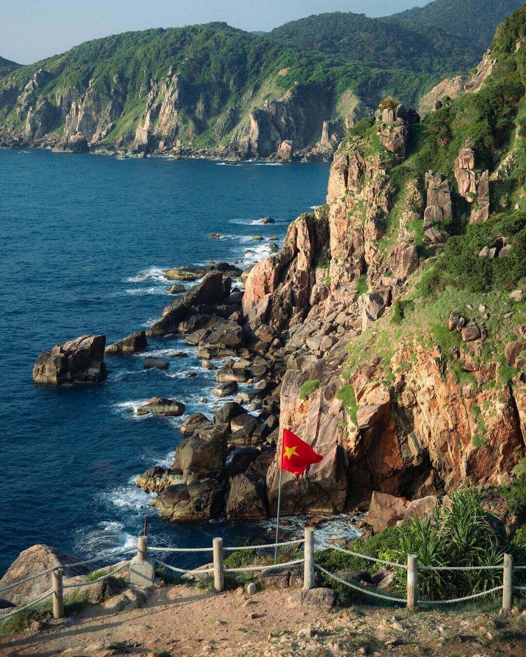 From a distance,Mui Dien looks like a giant turtle's back appearing and disappearing amidst the blue sky and vast sea. Mui Dien is one of the famous spots in Phu Yen,dubbed: "The Easternmost Point - The First Place to Welcome the Sunrise on Vietnam's Mainland."