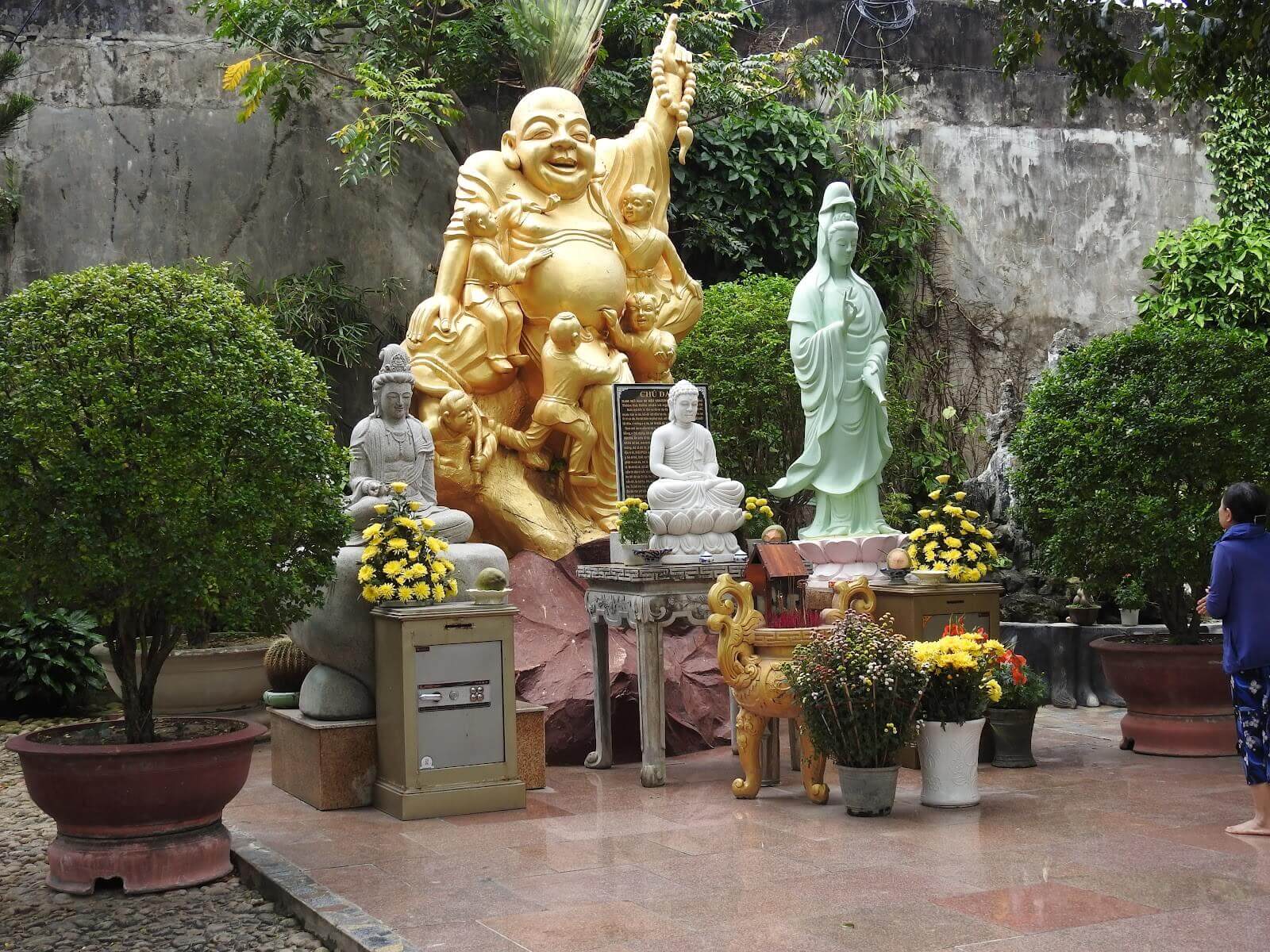 Chánh điện uy nghiêm,trang trọng,là nơi tôi tìm thấy sự tĩnh lặng trong tâm hồn. Ngồi trước tượng Phật,tôi cảm nhận được sự từ bi,sự an lạc lan tỏa. Tôi lắng nghe tiếng kinh kệ trầm bổng,tiếng chuông ngân nga,như một lời nhắc nhở về những giá trị tốt đẹp của cuộc sống.