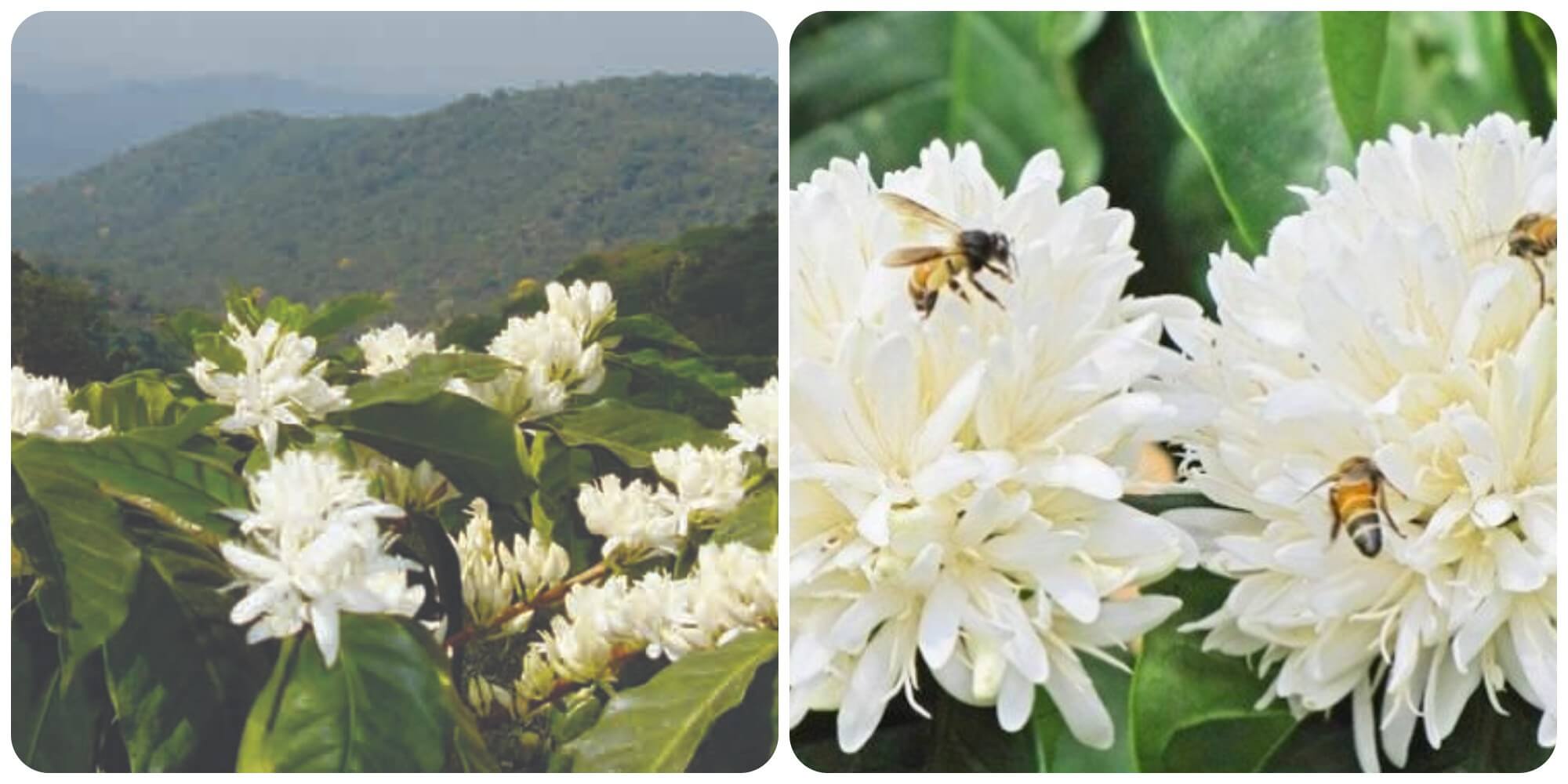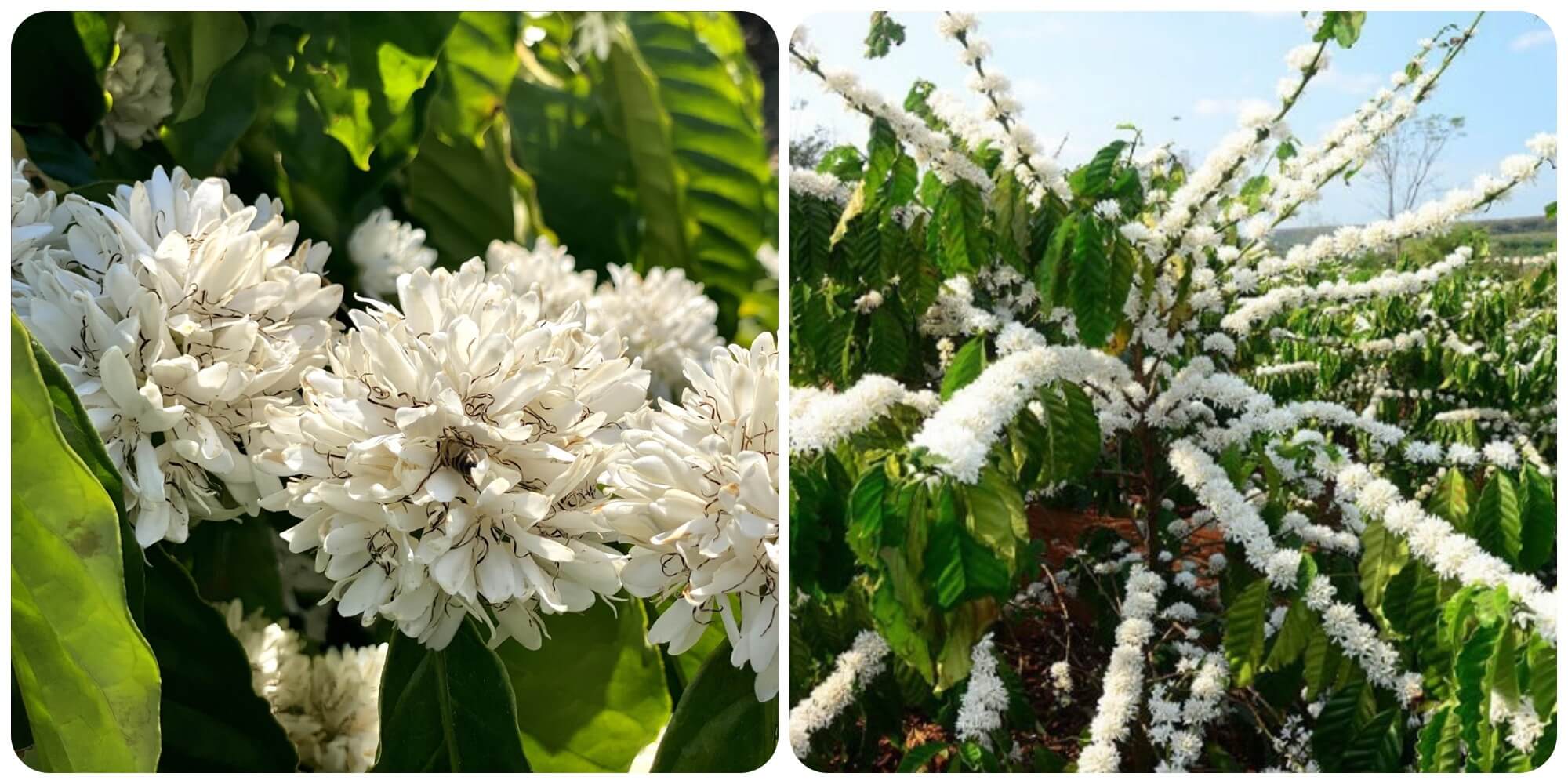 Len lỏi và dạo bước giữa những hàng cà phê trên con đường đất nhỏ,tôi dường như được bao quanh bởi những cây cà phê sum suê cành lá cùng với những chùm hoa nặng trĩu đang đung đưa theo gió như đang vẫy tay chào đón tôi. Quan sát gần tôi lại càng say mê với vẻ đẹp này hơn,những cánh hoa nhỏ trắng ngần,toát lên sự tinh khiết giống hệt những bông tuyết đầu mùa. Bạn có thể cảm nhận vẻ đẹp ấy qua các vần thơ lung linh của Xuân Diệu: