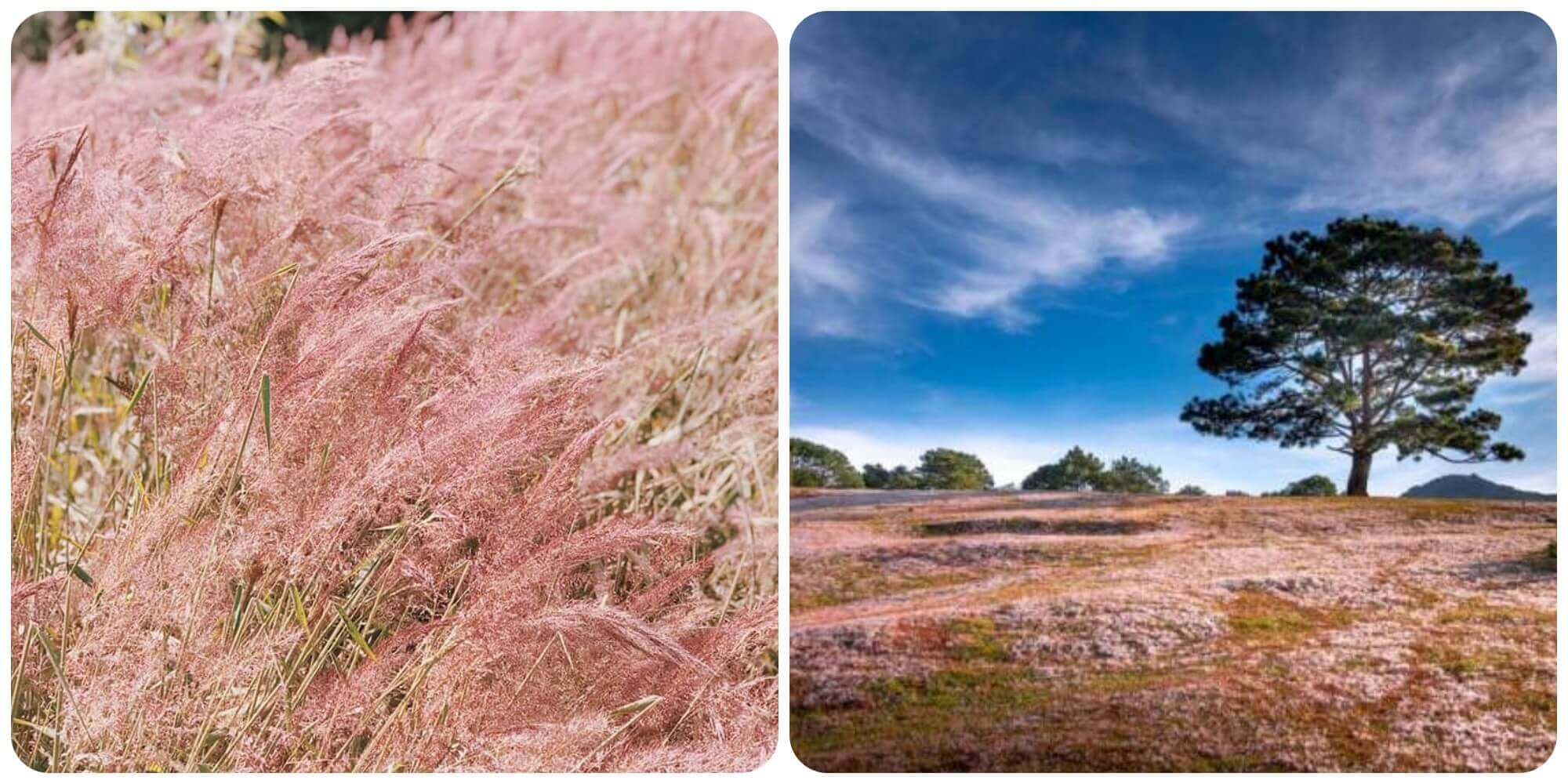 Từ xa,đồi hoa cỏ hồng hiện ra như một bức tranh được vẽ bằng những gam màu dịu dàng nhất của tự nhiên. Không phải là màu hồng rực rỡ như hoa anh đào hay màu hồng đậm đà của cánh hồng nhung,cỏ hồng ở Đăk Đoa mang sắc hồng phơn phớt,nhẹ nhàng như ánh hoàng hôn buông xuống cuối ngày. Những nhánh cỏ nhỏ li ti,mỗi chùm hoa như một dải lụa mềm mại đung đưa trong gió. Màu hồng ấy lan tỏa khắp triền đồi,hòa quyện cùng sắc xanh của rừng thông và bầu trời xanh biếc tạo nên một khung cảnh thơ mộng đến khó tả.