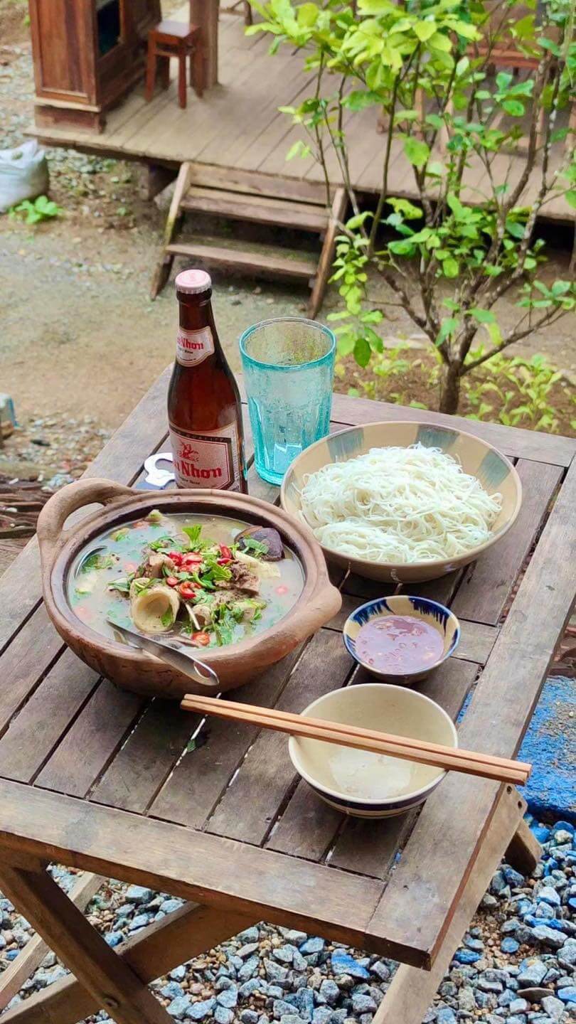 Đến với Nông Trại Ba Chua,chúng tôi không thể bỏ qua cơ hội thưởng thức những món ăn đặc sản của vùng quê An Lão. Những món ăn được chế biến từ nguyên liệu tươi ngon,mang đậm hương vị của núi rừng như gà rừng nướng,heo đen luộc,rau rừng xào tỏi... Đặc biệt,chúng tôi còn được thưởng thức món mẹt heo đen,heo đen nướng lá chuối,gà nướng,thịt trâu khô xào lá lốt,bún cua rừng...