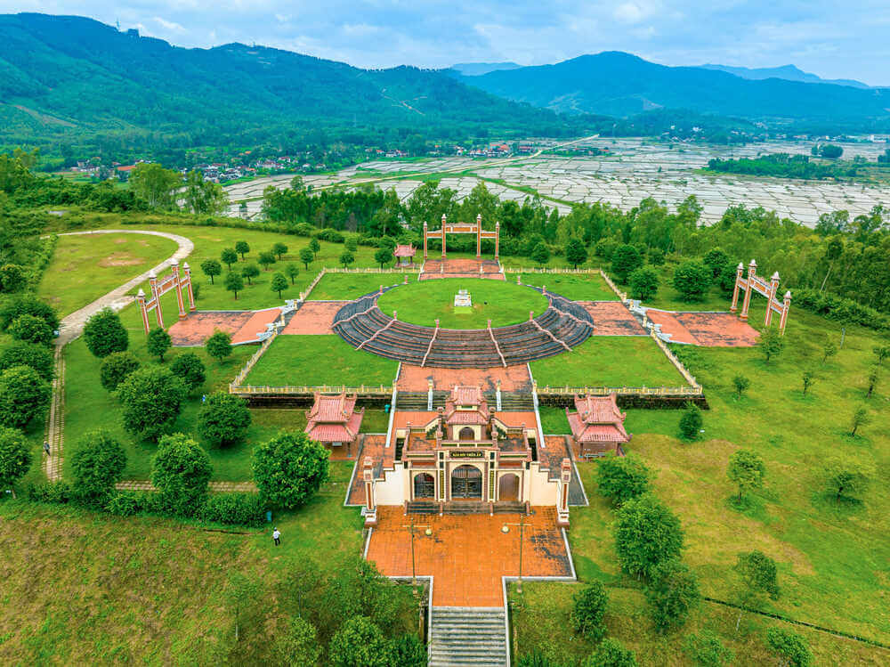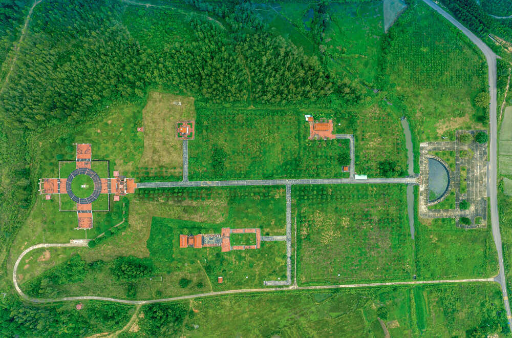 Công trình được xây dựng theo lối kiến trúc 3 tầng nền,tượng trưng cho Thiên - Địa - Nhân,thể hiện triết lý âm dương hòa hợp của người xưa. Giữa đài là Viên Đàn hình tròn,nơi vua Quang Trung từng làm lễ tế trời đất,cầu cho quốc thái dân an,mưa thuận gió hòa. Đứng trên đài cao,phóng tầm mắt ra xa,tôi như được chiêm ngưỡng cả một bức tranh sơn thủy hữu tình. Những dãy núi trùng điệp,xanh thẳm nối tiếp nhau đến tận chân trời. Xa xa,những mái nhà ẩn hiện giữa biển lúa vàng ươm,tạo nên khung cảnh yên bình,thơ mộng.
