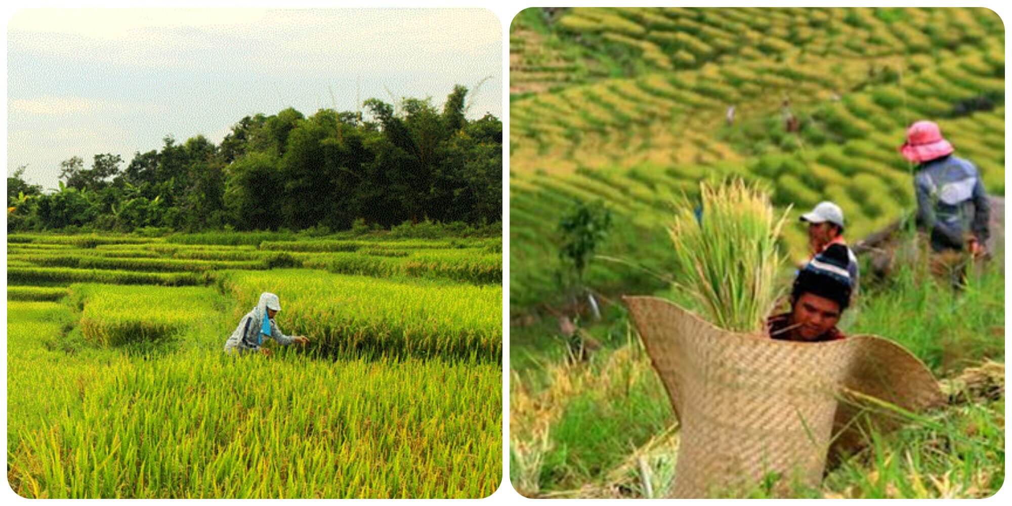 Cơn gió nhè nhẹ thổi qua từng cây lúa làm cho những giọt sương mai lấp lánh đang còn đọng trên lá rơi xuống đất. Ở ngoài đồng,người thì tay cầm cuốc,tay cầm liềm,người thì mang trên lưng những chiếc gùi xinh xinh được làm thủ công từ đôi tay khéo léo,ai cũng cần mẫn và chăm chỉ với công việc của mình. Họ làm việc dù có mệt đến đâu nhưng nụ cười vẫn luôn nở trên môi. Tiếng cười đùa và nói chuyện rôm rả càng làm cho bức tranh vùng quê nơi núi rừng thêm sinh động hơn. Những đứa trẻ tung tăng chạy theo phía sau lưng mẹ,chúng ríu rít hát ca như những chú chim nhỏ làm vang vọng khắp cả cánh đồng.