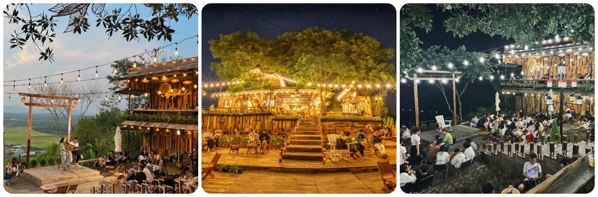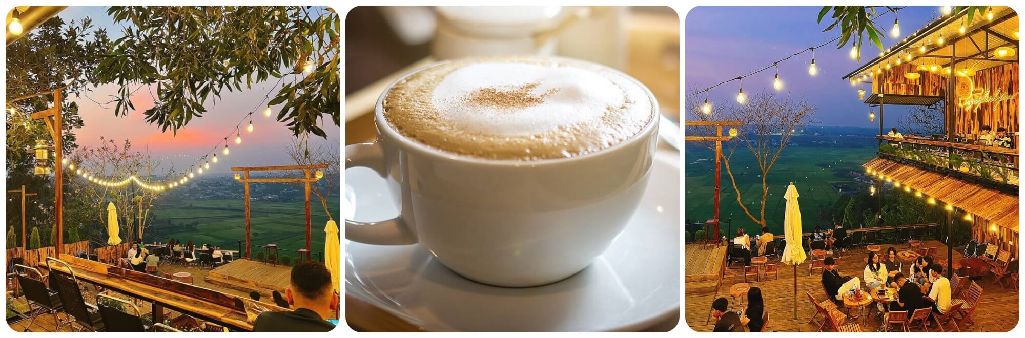 Không gian nơi đây không quá cầu kỳ,nhưng chính sự trang nhã và ấm cúng lại khiến tôi cảm nhận được sự tinh tế trong từng chi tiết nhỏ. Những chiếc bàn gỗ đặt cạnh ô cửa kính ngập tràn ánh sáng tự nhiên cùng những chậu cây xanh nhỏ xinh,tất cả như đồng điệu với tâm hồn tôi. Không gian mở của quán như một bức tranh khắc họa vẻ đẹp hiếm có của vùng cao nguyên. Từ bất kỳ góc ngồi nào,tôi cũng có thể phóng tầm mắt ngắm trọn những dãy đồi nhấp nhô trong ánh chiều tà. Đâu đó,tiếng chim ríu rít hòa vào gió tạo nên một bản hòa ca tự nhiên. Không gian được thiết kế tinh tế với những góc nhỏ dành riêng cho người yêu thích sự tĩnh lặng nhưng cũng không thiếu những khu vực rộn ràng dành cho các nhóm bạn bè muốn trò chuyện.