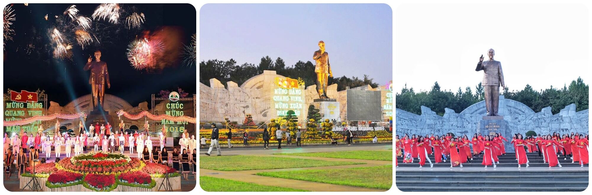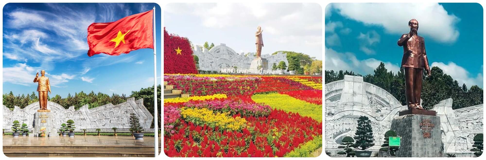 Điểm nhấn nổi bật nhất của Quảng trường là tượng đài Hồ Chí Minh – vị lãnh tụ kính yêu của dân tộc Việt Nam. Bức tượng được đặt tại giữa Quảng trường,cao lớn và trang nghiêm đã chứng tỏ vai trò và vị trí trung tâm trong tổng thể công trình. Khi đứng trước tượng đài Bác Hồ,tôi cảm nhận được sự thiêng liêng giống như thể Người vẫn luôn ở đây dõi theo từng bước phát triển của mảnh đất này. Bức tượng không chỉ là biểu tượng tôn kính mà còn là lời nhắc nhở về những giá trị cốt lõi mà Bác luôn khuyên dạy: sự đoàn kết,tình yêu quê hương và lòng yêu nước.