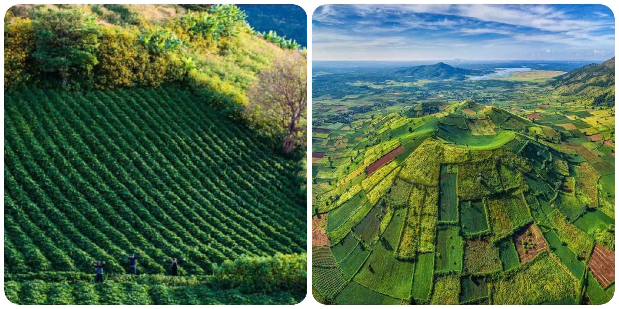 Được tạo thành ba ngọn núi lửa nằm sát nhau với ba miệng chính và miệng cao nhất là miệng số một. Được hình từ cách đây từ hàng triệu năm và tuy rằng đã ngừng hoạt động khá lâu nhưng những tàn tích nham thạch đã biến nơi đây trở thành một mảnh đất vô cùng màu mỡ,người dân địa phương đã tận dụng điều tuyệt vời mà thiên nhiên mang lại này bằng cách vun đắp,trồng trọt các loại cây,rau,củ,...khoác lên vùng đất này một vẻ đẹp tràn đầy sức sống.