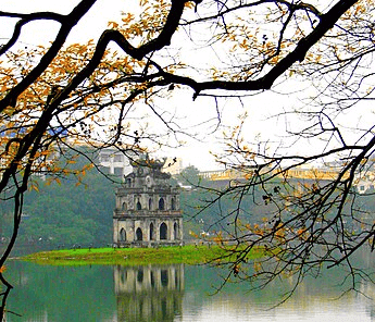 Hồ Hoàn Kiếm với Tháp Rùa (ảnh sưu tầm)