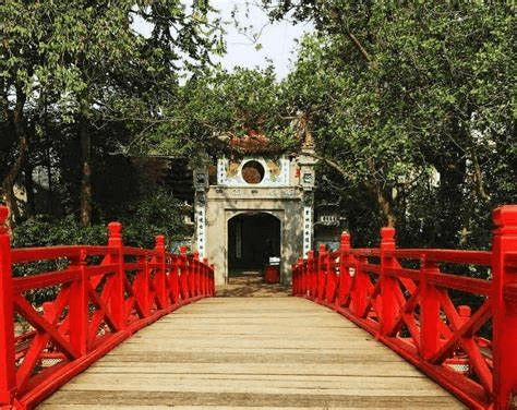 Cầu Thê Húc màu đỏ,thân cong cong mang ý nghĩa là cây cầu phản chiếu ánh mặt trời. Cầu Thê Húc dẫn chúng ta đến đền Ngọc Sơn. Đền được xây trên đảo Ngọc,bao quanh bởi cây cối. Đó là nơi ai ai cũng ghé thăm khi tham quan danh lam thắng cảnh hồ Gươm.