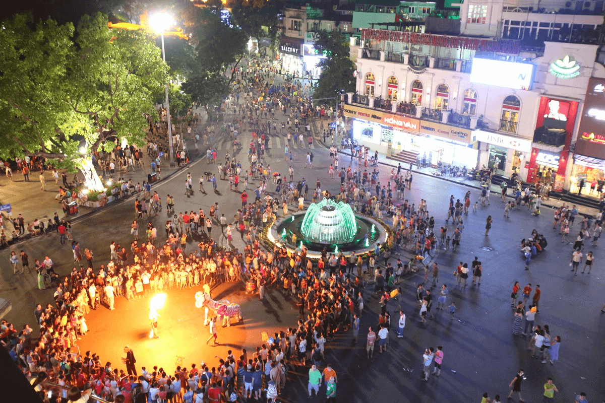 Đến Hà Nội phải đến phố đi bộ Hồ Gươm là một trong những địa điểm vui chơi cuối tuần ở Hà Nội thu hút rất nhiều người dân Thủ đô và du khách bốn phương. Phố đi bộ Hồ Hoàn Kiếm hoạt động từ 19h đến 24h mùa hè và 18h đến 24 mùa đông,vào các buổi tối thứ 6,thứ 7 và chủ nhật. Phố đi bộ bao gồm 16 tuyến bố xung quanh Hồ Hoàn Kiếm và cấm các phương tiện lưu thông. Hòa mình vào phố đi bộ,du khách sẽ cảm nhận được sự đông vui,nhộn nhịp của các hoạt động tại đây. Từ những hoạt động đường phố đến cảnh người dân Thủ đô đi dạo… tất cả đều hiện lên vui nhộn và sống động.