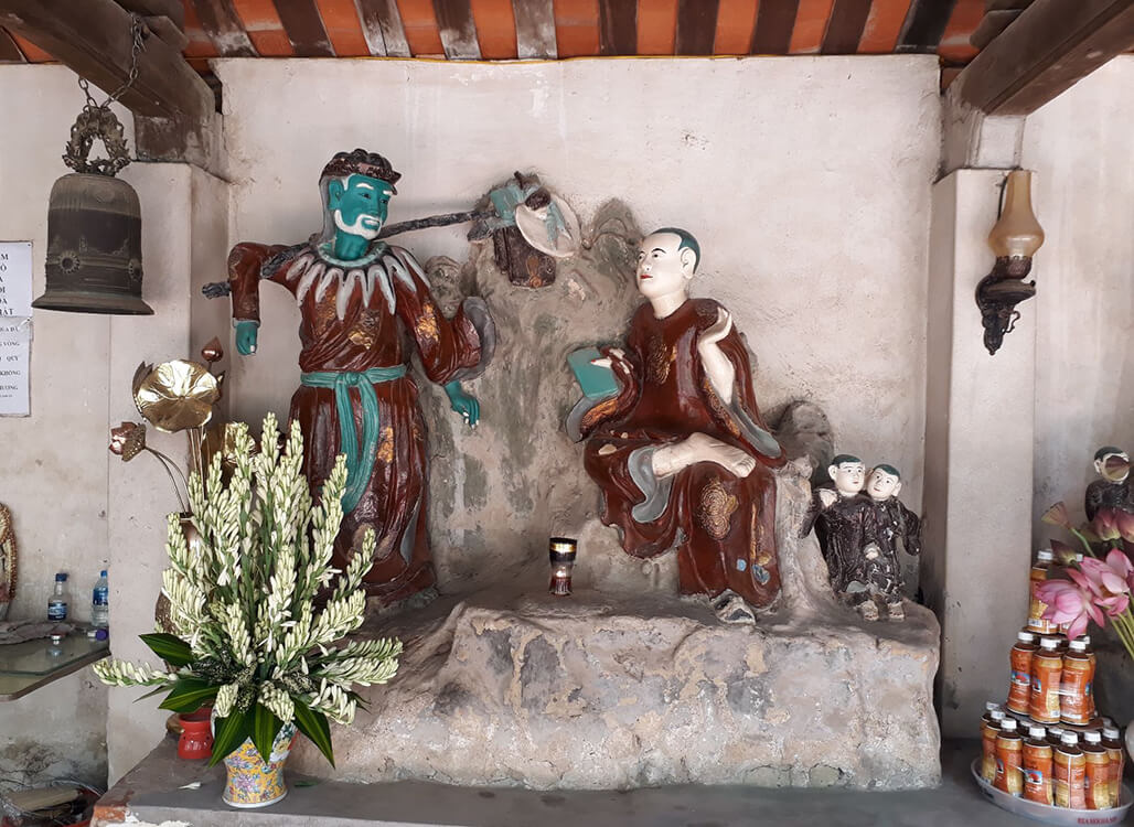 Không chỉ nổi tiếng với kiến trúc truyền thống,cổ kính chùa Nôm còn thu hút du khách bởi sự giàu có,phong phú khi sở hữu 122 pho tượng thần thánh được đúc đông đảo bằng gỗ nung như: tượng A Di Đà,Phật bà,Tam thánh,Tam thế,Bát bộ kim cương,Thập bát la hán....Gian tam bảo phía trước thờ Phật Pháp Tăng,gian phía sau thờ Tam Tòa Thánh Mẫu,thờ cậu thờ cô,nhị vị tiên nàng. Không khí trầm mặc như hòa tan cùng sự trang nghiêm,kính trọng trong tâm linh con người.