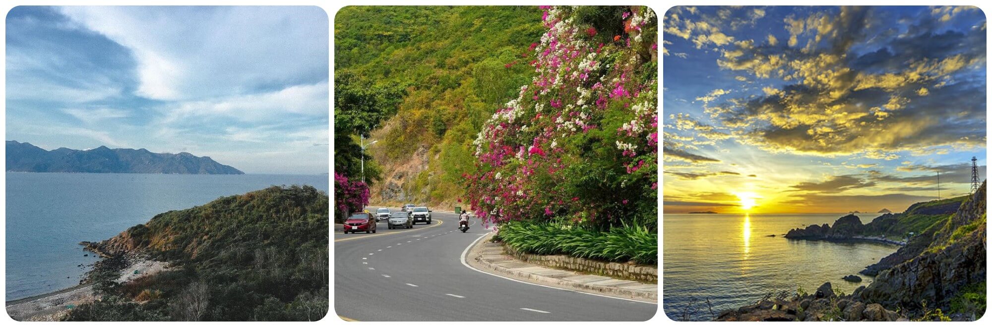 Khởi hành từ trung tâm thành phố Nha Trang,tôi đi qua cầu Trần Phú rồi men theo con đường Phạm Văn Đồng,hướng về phía Bắc. Con đường ấy dẫn lối tôi đến một không gian hoàn toàn khác biệt,nơi mà biển trời giao hòa. Nắng,gió,cây cỏ cùng hòa quyện tạo nên bức tranh thiên nhiên đầy sống động. Một bên là núi non xanh ngắt,bên kia là biển cả mênh mông. Gió từ biển thổi vào mát rượi,mang theo hương vị mặn mòi của đại dương khiến tâm hồn tôi như được thanh lọc.