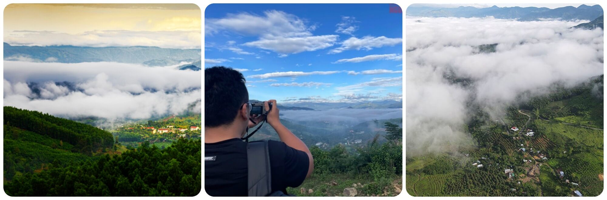 Để bắt đầu hành trình “săn mây,” tôi và nhóm bạn đã thức dậy từ khi trời còn tờ mờ sáng,không khí se lạnh ôm trọn mọi giác quan. Chỉ mất khoảng 20 phút di chuyển từ thị trấn Tô Hạp,chúng tôi đã có mặt tại đỉnh đèo,nơi mây và đất trời như hòa quyện vào nhau trong sự kỳ diệu của thiên nhiên. Từ trên đỉnh đèo Khánh Sơn,tôi như lạc vào một chốn bồng lai tiên cảnh. Biển mây trắng xóa trải rộng,nhẹ nhàng ôm lấy thung lũng Tô Hạp,tạo nên khung cảnh huyền ảo khiến lòng người ngỡ ngàng.