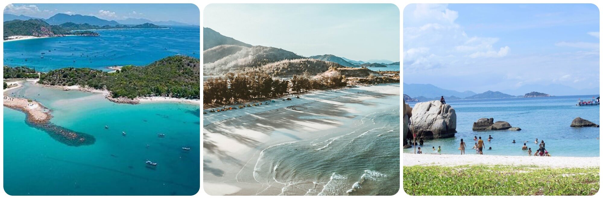Hành trình khám phá Bình Tiên còn đưa tôi đến những hòn đảo lân cận. Tôi thuê một chiếc thuyền nhỏ từ ngư dân địa phương để ghé thăm hòn Trứng,hòn Mũi – những đảo nhỏ nằm không xa bờ. Từng đợt sóng nhẹ nhàng vỗ vào mạn thuyền,mang theo tiếng gọi của biển cả. Đặt chân lên đảo,tôi bị ấn tượng bởi sự hoang sơ và vẻ đẹp nguyên bản của chúng.