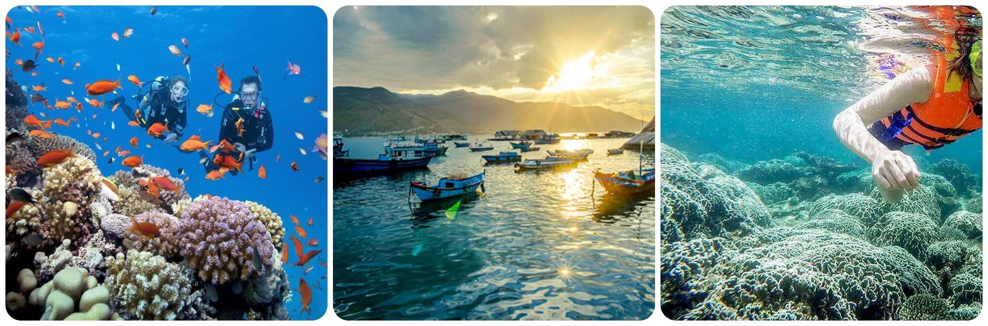 Một trải nghiệm không thể bỏ qua khi đến Bình Tiên chính là lặn ngắm san hô. Tôi háo hức trang bị kính lặn và nhẹ nhàng thả mình xuống dòng nước xanh trong. Những rạn san hô hiện ra trước mắt tôi như một khu vườn dưới đáy biển,lung linh với đủ sắc màu và hình dáng kỳ thú. Tôi say mê ngắm nhìn những rạn san hô cùng đàn cá nhỏ bơi lượn,cảm giác như được khám phá một thế giới khác,bí ẩn và đầy cuốn hút.