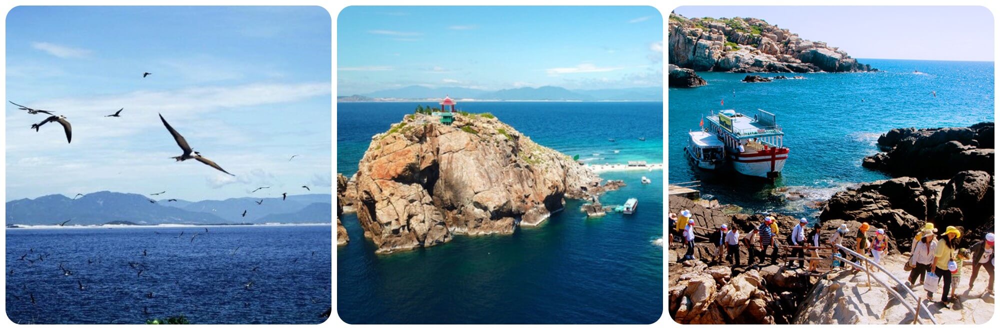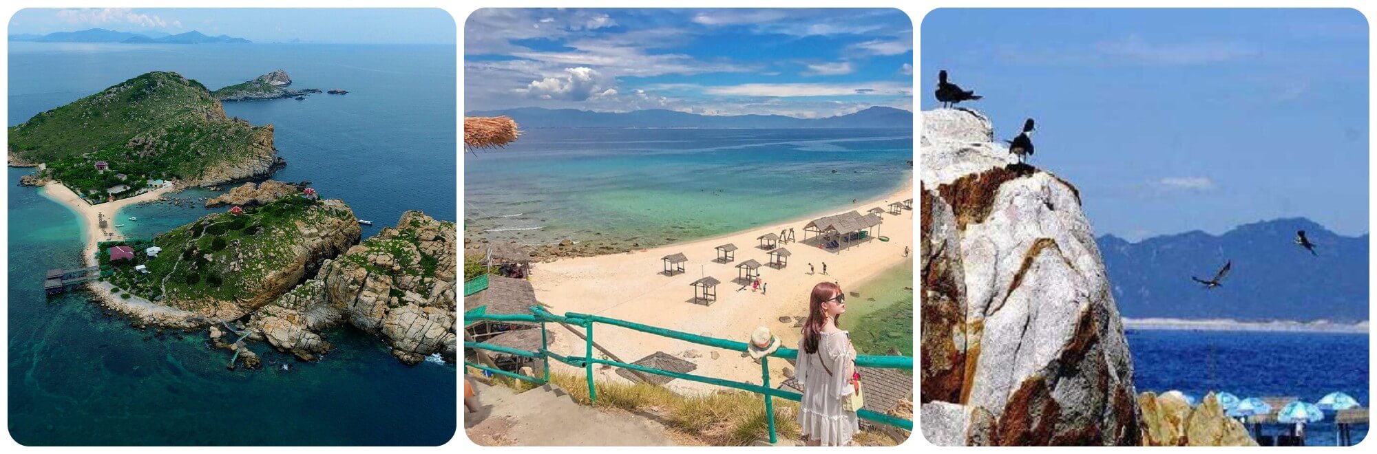 Đặt chân lên đảo,tôi lập tức cảm nhận được không khí tĩnh lặng,thanh bình. Tiếng sóng vỗ nhẹ nhàng hòa cùng tiếng gió lao xao qua những rặng dừa tạo nên một không gian yên ả hiếm có. Được biết,đây là nơi tập trung đông đảo chim yến làm tổ tạo nên một nét đặc trưng mà không nơi nào khác có được.
