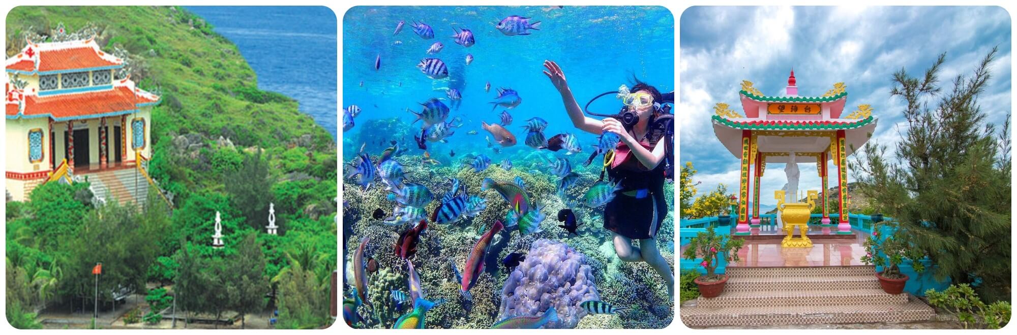 Chuyến đi còn thú vị hơn khi tôi tham gia trải nghiệm tàu đáy kính,ngắm nhìn những rạn san hô rực rỡ dưới lòng biển cùng đàn cá nhỏ tung tăng bơi lội. Đó là khoảnh khắc tôi cảm nhận được sự sống động và đa dạng của đại dương,như một bức tranh thiên nhiên sống mãi trong tâm trí. Kết thúc hành trình,tôi ghé thăm đền thờ Tổ nghề Yến sào – một nơi mang đậm dấu ấn lịch sử và tâm linh. Những câu chuyện về những người đã gìn giữ và phát triển nghề yến qua bao thế hệ làm tôi thêm trân trọng và yêu mến vùng đất này.
