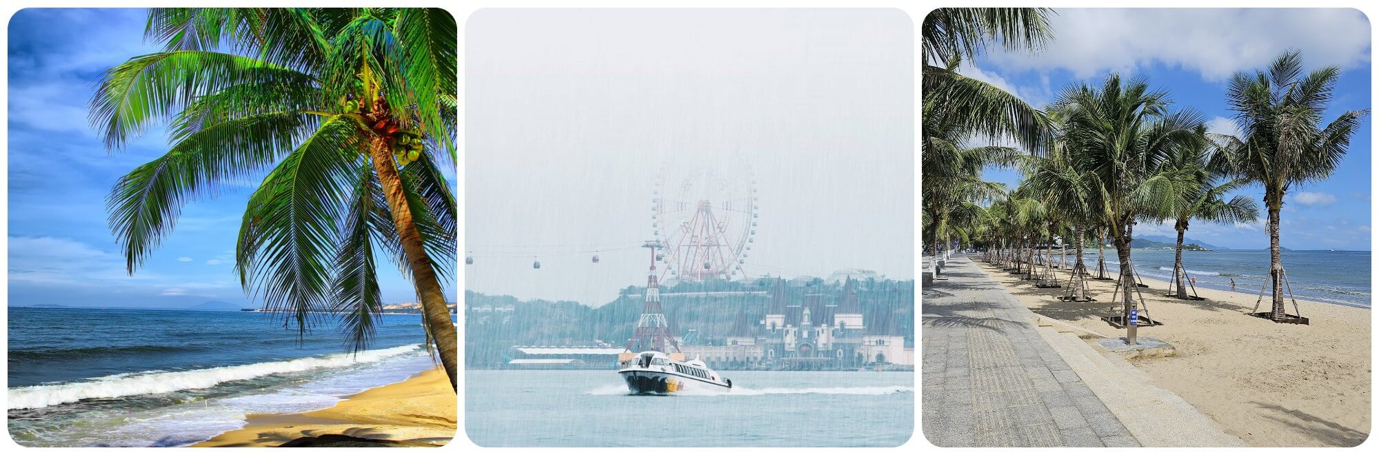 Những cơn mưa bất chợt ào xuống rồi tan nhanh như thể chỉ muốn tô điểm thêm nét chấm phá cho bức tranh thiên nhiên. Có những đêm,mưa nhẹ nhàng rơi suốt từ khuya đến sáng,để lại một buổi bình minh cùng những giọt nước long lanh trên từng ngọn cỏ,phiến lá. Tôi đứng trên ban công khách sạn,hít căng lồng ngực bầu không khí trong lành sau cơn mưa,cảm nhận sự tĩnh lặng và dịu dàng của phố biển trong những khoảnh khắc đầu ngày. Thật may mắn khi tôi đến đây vào cuối đông,khi những cơn mưa phùn bắt đầu xuất hiện như một món quà tự nhiên dành tặng cho hoa lá để chuẩn bị đón xuân. Những cơn mưa nhẹ chỉ đủ để làm ướt đôi vai người qua đường lại mang đến cho phố biển một vẻ lãng mạn rất riêng.