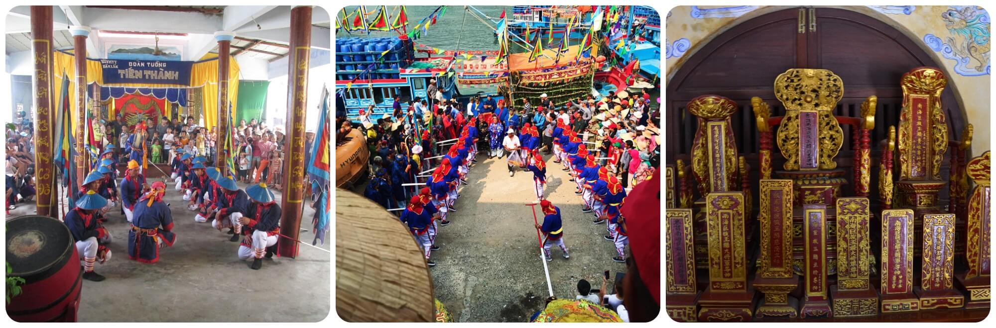 Không chỉ dừng lại ở các lăng thờ,tục thờ cá Ông còn được thể hiện qua lễ hội Cầu ngư – một trong những sự kiện lớn nhất của cư dân biển Khánh Hòa. Lễ hội không chỉ đáp ứng nhu cầu tâm linh mà còn mang lại không gian văn hóa sống động với những nghi thức tế lễ trang nghiêm,các diễn xướng dân gian đặc sắc. Đây là dịp để ngư dân tưởng nhớ các bậc tiền hiền,hậu hiền – những người đã khai phá vùng đất,gầy dựng cuộc sống gắn bó với biển. Đồng thời,lễ hội cũng là lời cầu mong mưa thuận gió hòa,mùa đánh bắt bội thu và sự bình an trong những chuyến ra khơi.