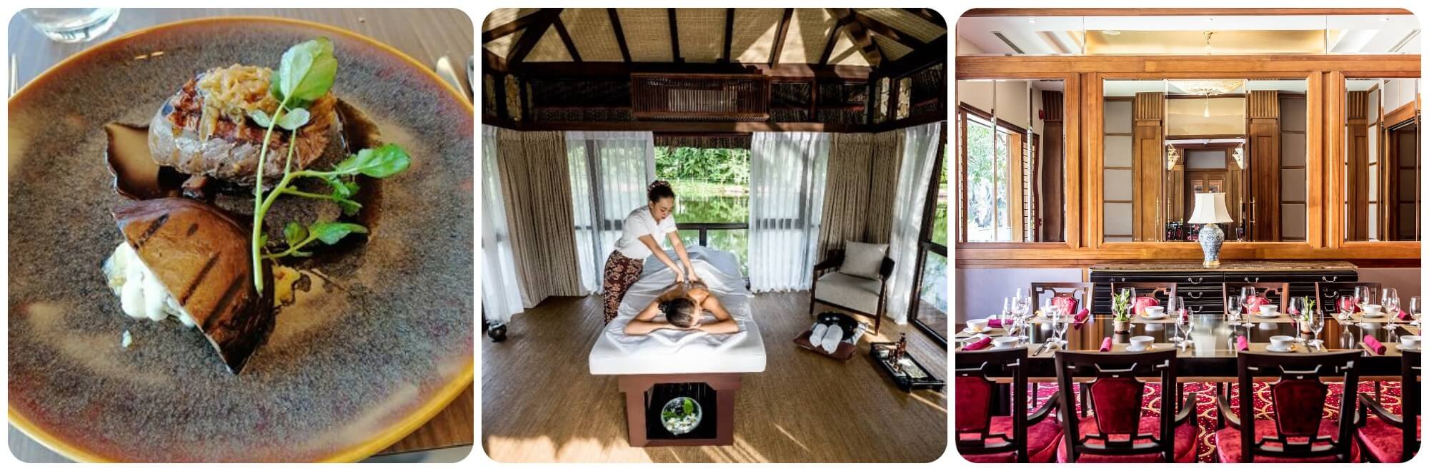 Khi đến đây,chắc chắn bạn không thể bỏ qua những dịch vụ độc đáo như AKOYA Spa trên mặt biển,nơi cơ thể và tâm hồn được chăm sóc một cách tuyệt vời. Những bàn tay khéo léo của các chuyên gia massage giúp giải tỏa mọi căng thẳng,cùng âm thanh sóng biển vỗ về tạo nên sự thư giãn tuyệt đối. Đây là khoảng thời gian mà mọi mệt mỏi dường như tan biến,nhường chỗ cho sự bình yên và nhẹ nhàng.