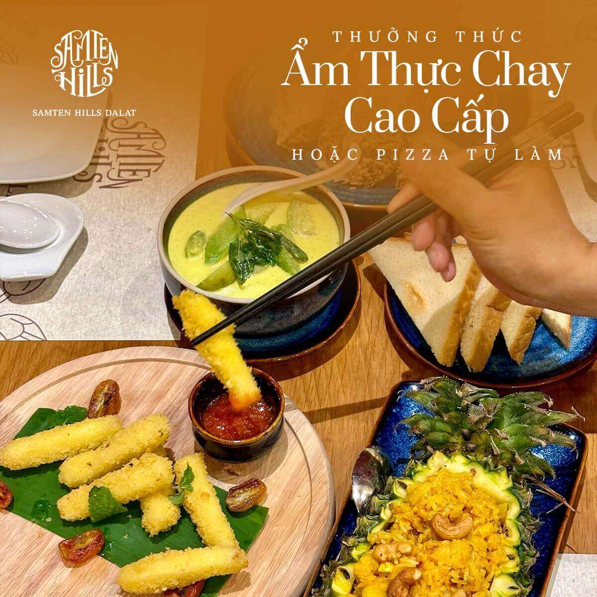 Sau những trải nghiệm tâm linh thiêng liêng,quý khách hàng hãy dành thời gian thưởng thức những món ăn chay bổ dưỡng từ nguyên vật liệu sạch,an toàn kết hợp cùng đôi bàn tay chế biến khéo léo và tình yêu thương,nụ cười của đội ngũ đầu bếp nhà hàng Samten Hills Dalat.