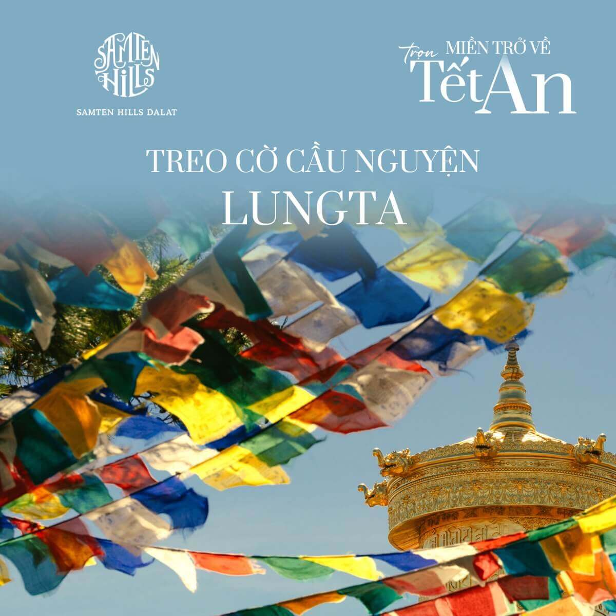 Treo những lá cờ Lungta lên đồi cao lộng gió mang ý nghĩa to lớn về phước lành,gieo nguyện lành vào gió và đón nhận những may mắn & trường thọ. Một trải nghiệm đầy ý nghĩa tại Samten Hills Dalat.