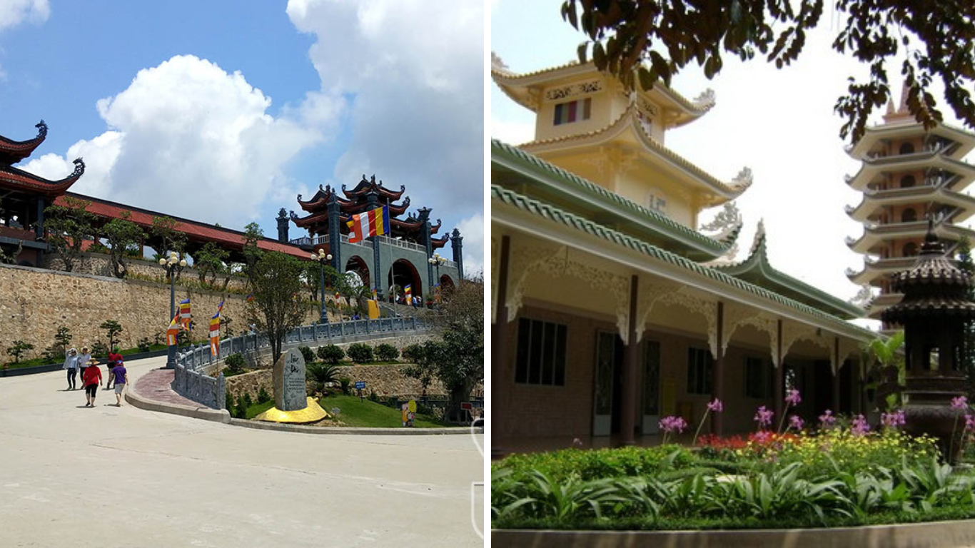 Khuôn viên chùa được bao quanh bởi hàng cây xanh mát và các bồn hoa rực rỡ. Tiếng chim hót và tiếng chuông chùa ngân vang khiến khung cảnh càng thêm yên bình. Mỗi lần bước qua cổng tam quan,mình có cảm giác như đang rời khỏi thế giới ồn ào ngoài kia. Cảm giác tĩnh lặng và thiêng liêng lan tỏa trong từng bước chân.