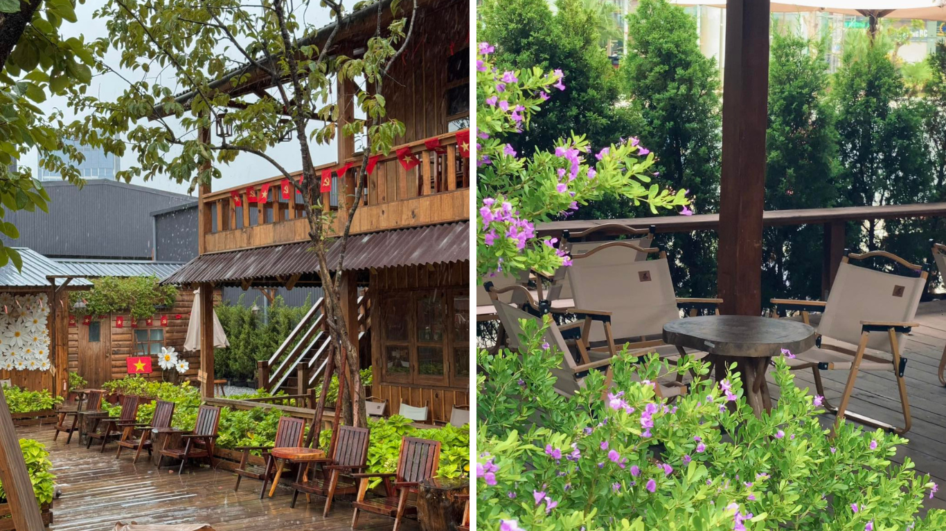 Điểm nhấn thú vị là khu vườn nhỏ với nhiều loại hoa theo mùa,đặc biệt có cúc họa mi mỗi dịp cuối năm. Đây là nơi nhiều bạn trẻ thích chụp ảnh,lưu lại khoảnh khắc đẹp cùng bạn bè. Lối đi lát đá xen lẫn cây xanh tạo nên bức tranh thiên nhiên ngay trong quán. Không khí trong lành ở khu vườn này mang đến cảm giác tách biệt với phố xá nhộn nhịp bên ngoài.