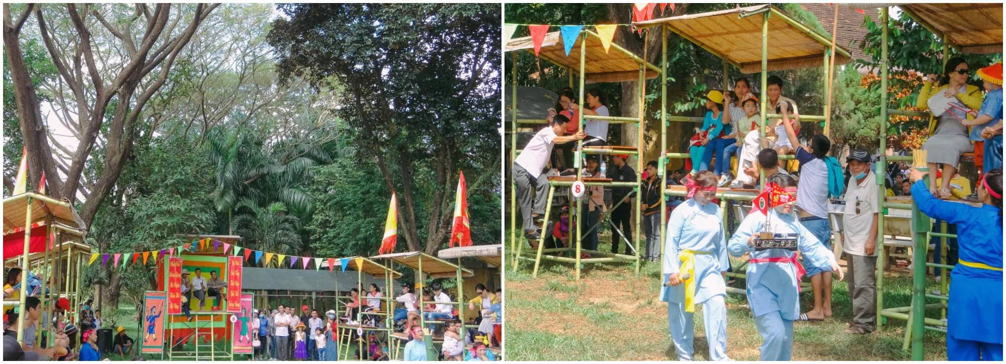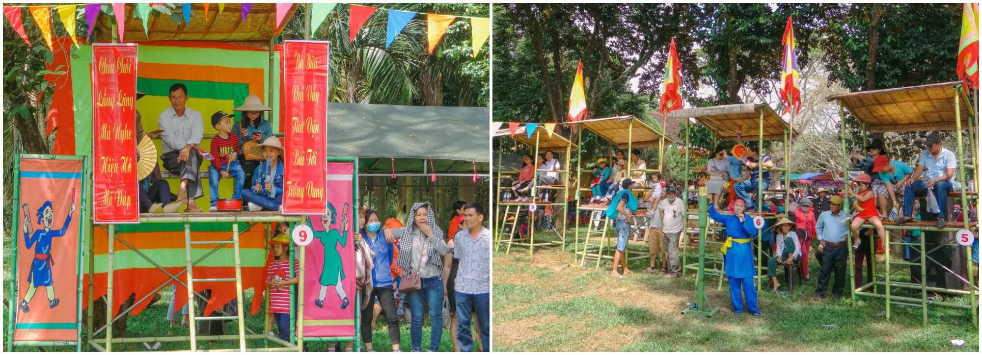 Không gian lễ hội thường được tổ chức ở những khu đất trống,rộng rãi hoặc trước sân đình,miếu cổ,gần các khu dân cư và chợ. Những địa điểm ấy,tưởng chừng bình dị,nhưng khi lễ hội diễn ra lại trở thành tâm điểm của sự sống,nơi từng nhịp tim của mọi người đều hòa chung một nhịp. Đám đông tụ họp,những mái chòi dựng lên giản đơn nhưng lại là nơi kết nối bao trái tim. Mỗi lượt gọi bài,mỗi câu hát ngân vang đều như gói trọn tình yêu quê hương,sự tự hào và niềm vui xuân,làm cho những ai chứng kiến cũng không khỏi bồi hồi,say đắm.