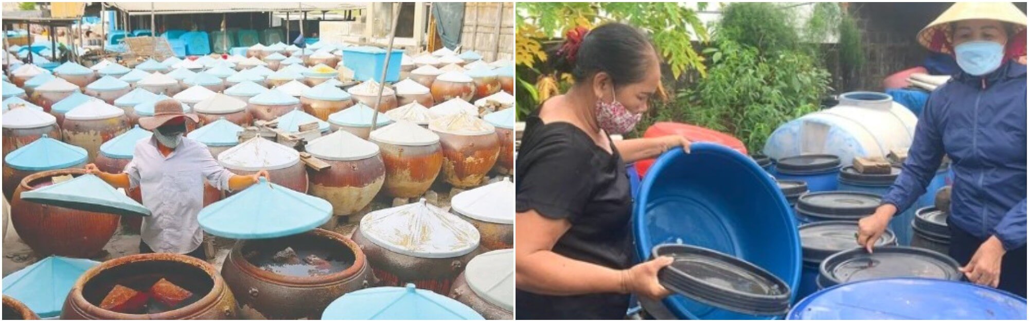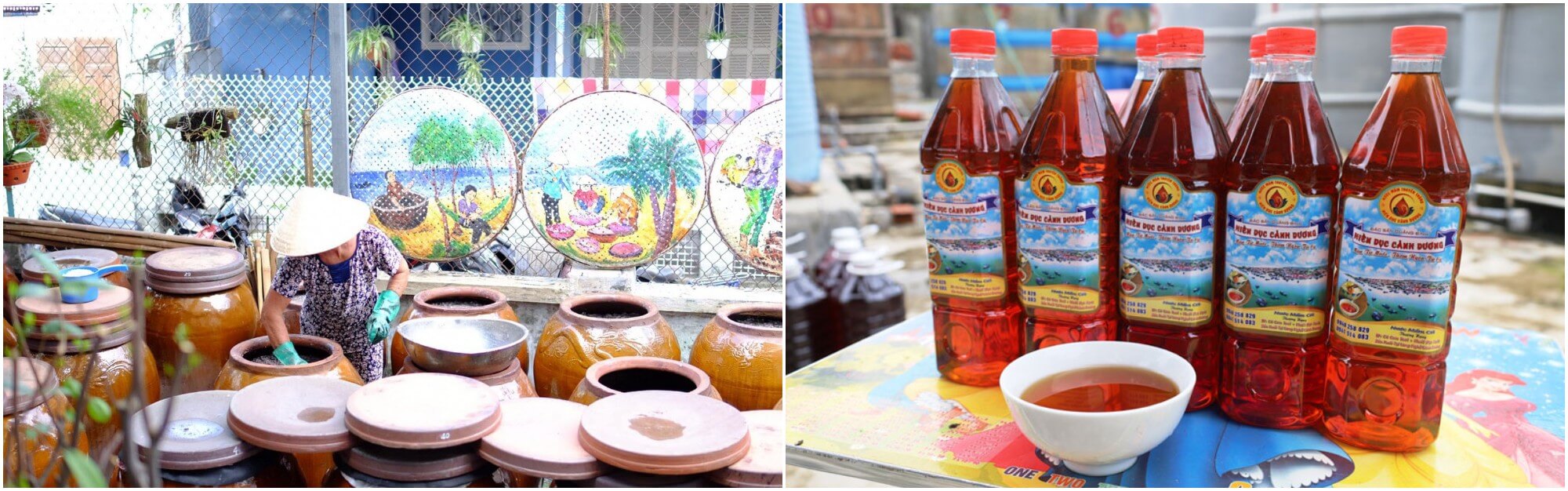 Quá trình chế biến nước mắm ở đây là một nghệ thuật mà mỗi công đoạn đều được thực hiện cẩn thận,kỹ lưỡng. Muối để ướp cá phải là loại muối hạt lớn,tinh khiết,được ủ trong các chum lớn,cất giữ cẩn thận trong suốt hai đến ba năm. Thời gian chính là chìa khóa để muối cá "chín",không còn vị đắng chát mà thay vào đó là hương vị thơm ngon đặc trưng. Qua từng ngày,từng tháng,chum nước mắm dưới ánh nắng và gió biển dần trở thành tinh hoa của đất trời và biển cả. Những giọt nước mắm ấy không chỉ làm phong phú thêm bữa cơm gia đình mà còn là món quà ý nghĩa,mang theo hương vị quê hương đến với mọi miền đất nước.