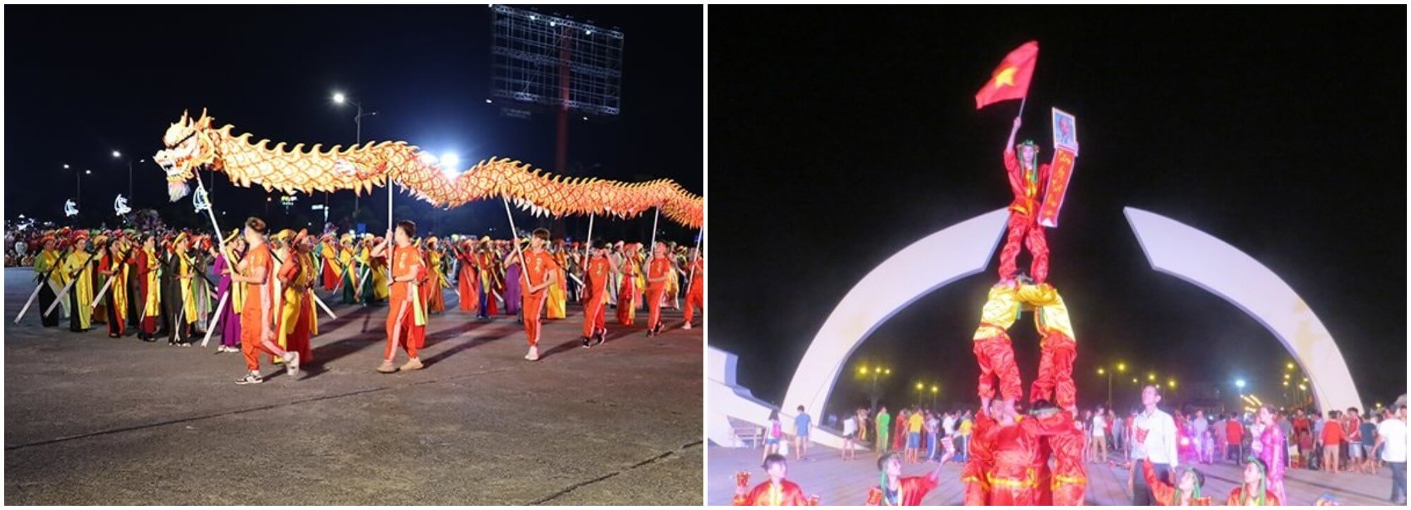 Đêm xuống,khi ánh trăng rằm chiếu sáng bầu trời Quảng Bình,không gian lễ hội như được nhuộm thêm sắc huyền ảo. Ánh trăng soi rọi mặt biển,soi cả những gương mặt rạng ngời của người dân và du khách đang hòa mình trong những tiết mục múa hát. Lời hò mái nện sâu lắng tựa như tiếng thì thầm của đại dương,kể lại những câu chuyện cổ xưa về vùng đất này. Những giai điệu ấy không chỉ mang lại cảm giác thiêng liêng mà còn chứa đựng cả ký ức về một nền văn hóa lâu đời,nơi niềm tin và hy vọng được gửi gắm qua từng câu hát.