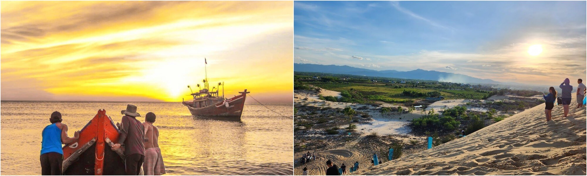 Quang Phú không thiếu những điều thú vị,những ai yêu vận động có thể thử trải nghiệm trượt cát trên đồi cát cao sừng sững gần biển. Cát ở đây mịn,trơn,rất lý tưởng cho trò chơi trượt từ đỉnh đồi xuống. Cảm giác lao vun vút giữa nắng gió,tiếng cát lạo xạo vang vọng dưới tấm ván trượt khiến tim đập rộn ràng trong một khoảnh khắc ngắn ngủi nhưng đầy hưng phấn.