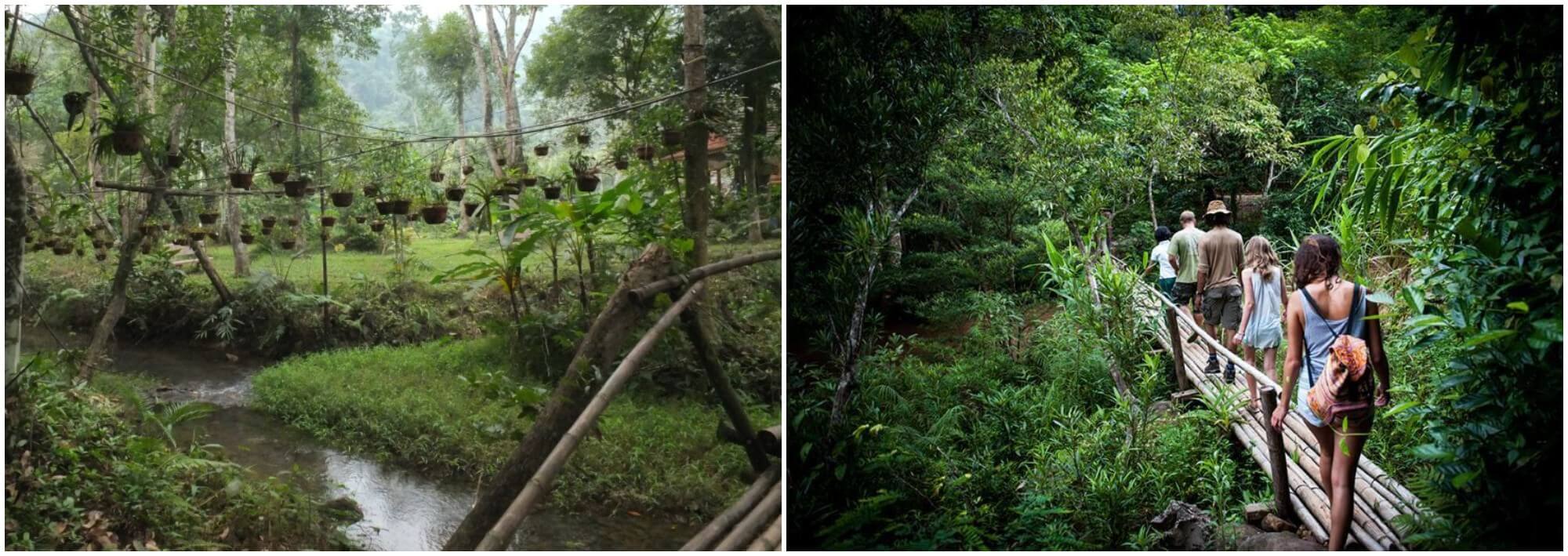 Khu vườn thực vật còn ẩn chứa nhiều câu chuyện thú vị qua từng điểm đến. Cây Sao trăm tuổi và cây Gùa cổ thụ sừng sững như những người lính già,lặng lẽ canh giữ khu rừng. Những cành cây gân guốc,mạnh mẽ kể câu chuyện về sức sống mãnh liệt của thiên nhiên trước thời gian. Đồi Vọng Cảnh đưa tầm mắt vươn xa,mở ra khung cảnh rừng núi trải dài bất tận,nơi màu xanh của cây lá và màu xanh của trời hòa quyện tạo thành một bản giao hưởng đầy sức sống.