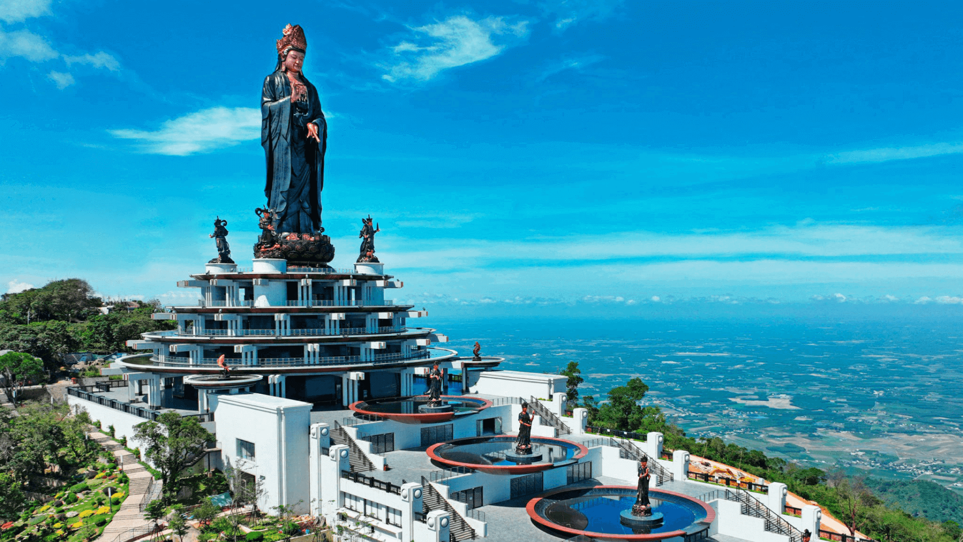 Ba Den Mountain,in Tay Ninh province,stands tall at 986m and is known as the "Roof of the Southeast" or more beautifully as "The First Heavenly Mountain". About 100km from Ho Chi Minh City,Ba Den Mountain is located in the Northeast of Tay Ninh City,part of the cultural and historical relic complex of the same name. Besides its impressive height,this place also attracts tourists with its charming nature,majestic mountains and countless folk tales that have been passed down by word of mouth for hundreds of years.