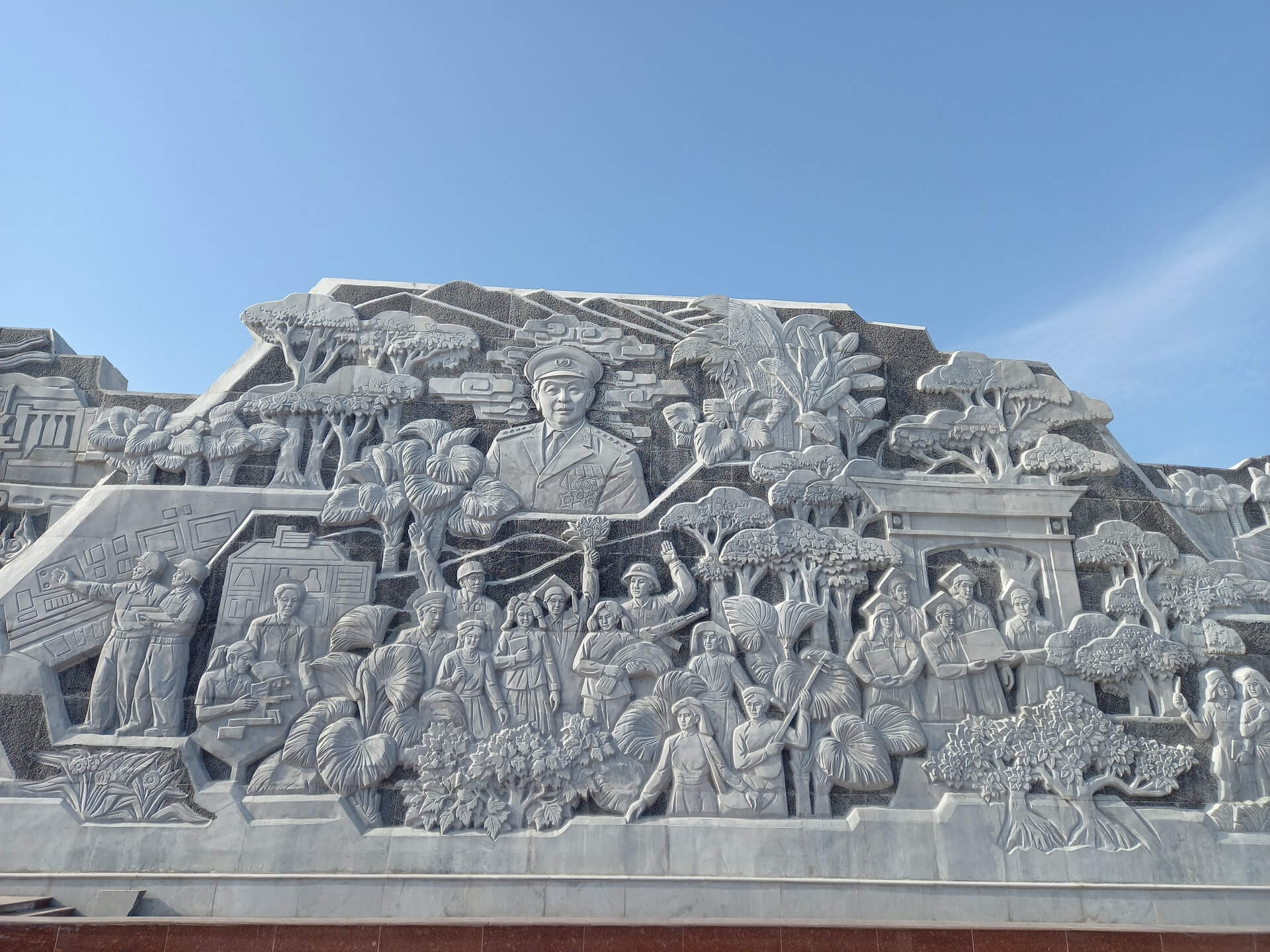 Điểm nhấn tại quảng trường là tấm phù điêu “Đại tướng Võ Nguyên Giáp với đồng bào các dân tộc tỉnh Thái Nguyên” đặt ở vị trí trung tâm.