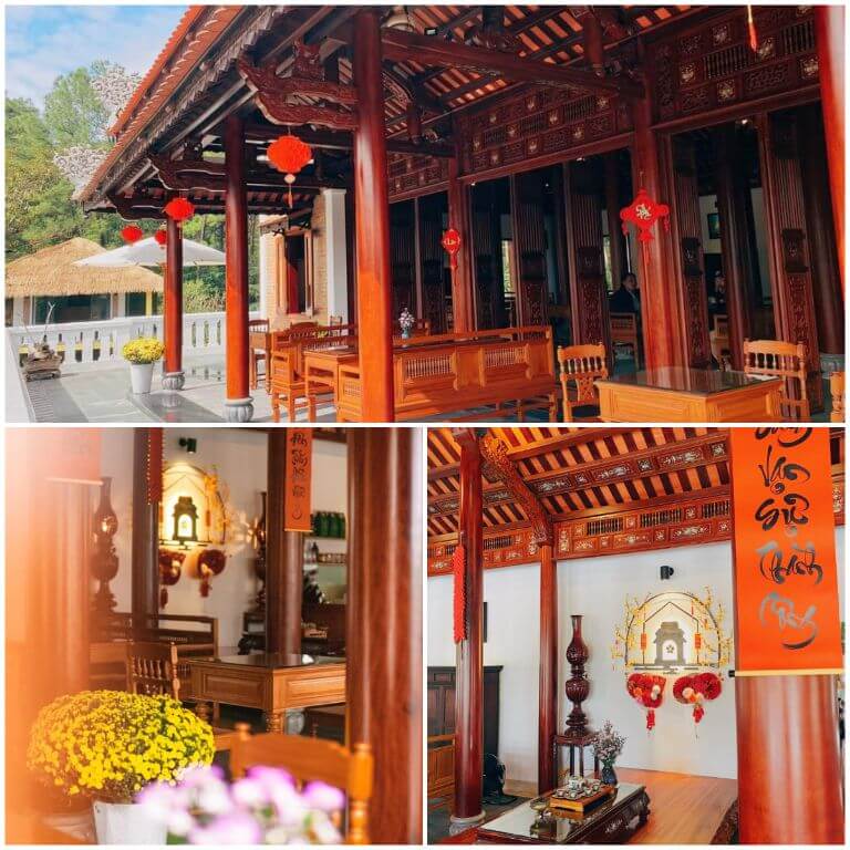 Khi bước vào khuôn viên của An Nam Huế Homestay & Restaurant,bạn sẽ ngay lập tức bị ấn tượng bởi vẻ đẹp cổ kính của kiến trúc. Với mái ngói đỏ tươi,cổng tam quan và những lối đi lát đá,nơi đây gợi nhớ đến những ngôi nhà cổ truyền thống của Huế. Đặc biệt,các chi tiết trang trí như đèn lồng đỏ,bình hoa cúc,hay những bức tranh thư pháp treo tường càng làm tăng thêm vẻ đẹp truyền thống.