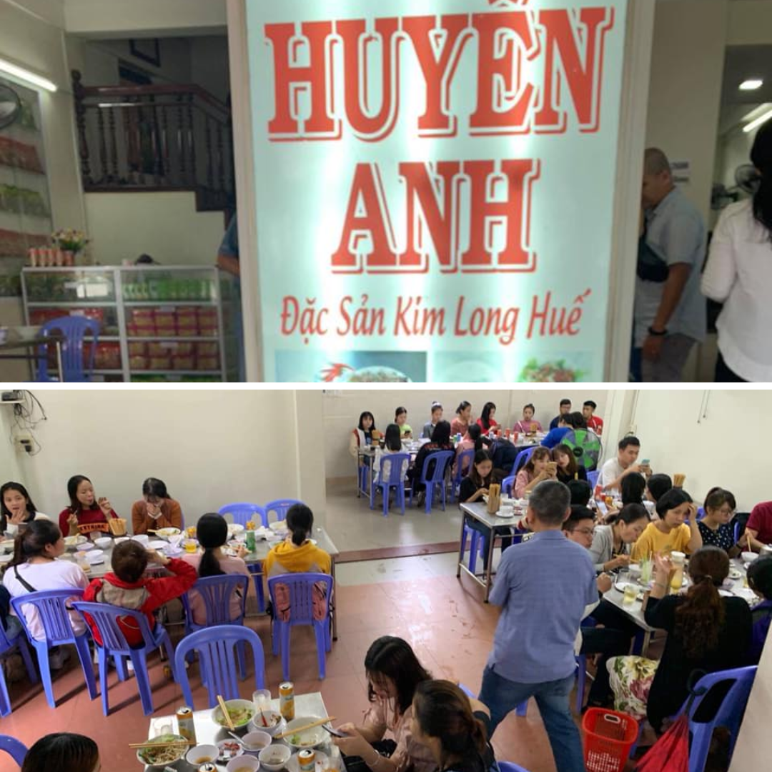 Quán ăn nổi tiếng này chính là Bánh ướt Thịt nướng Huyền Anh, tọa lạc tại Số 50 Đ. Kim Long, P. Kim Long, TP. Huế. Vị trí quán rất thuận tiện cho việc dừng chân nghỉ ngơi, đặc biệt khi bạn vừa kết thúc chuyến tham quan ở các điểm du lịch phía Tây thành phố. Quán nằm ngay trên trục đường chính dẫn đến Chùa Thiên Mụ, giúp du khách dễ dàng tìm thấy mà không cần phải đi sâu vào ngõ hẻm.