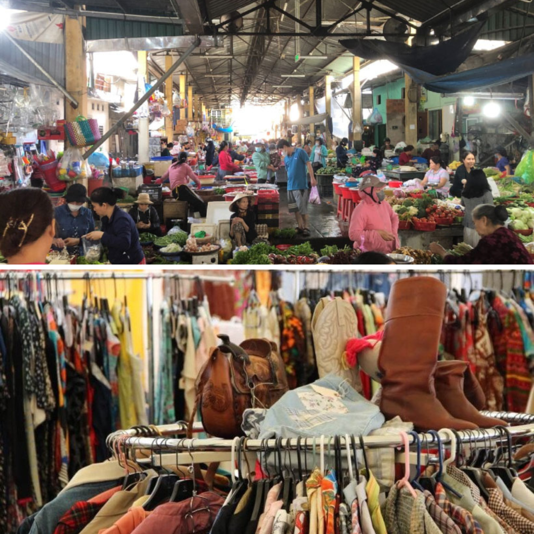 Lúc mình dạo trong chợ,cảm giác đầu tiên là rất vui tai và vui mắt. Tiếng rao,tiếng cười,tiếng trò chuyện vang khắp nơi. Mọi người vừa mua bán vừa nói chuyện như quen từ lâu,khiến ai đến cũng cảm thấy được chào đón. Mình nhớ nhất là mùi vải cũ xen lẫn mùi nắng – thứ mùi mà chỉ những ai từng săn đồ secondhand mới hiểu được.