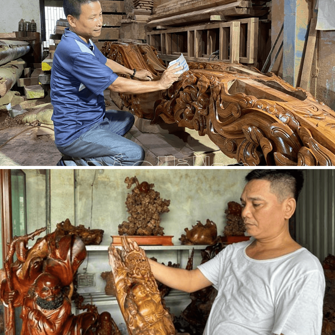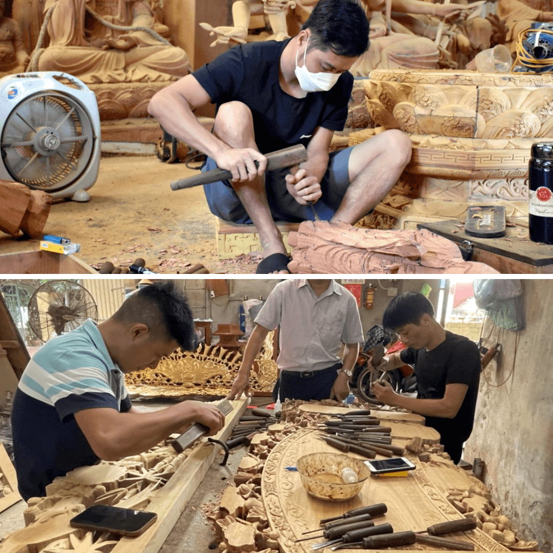 Sự khéo léo của các nghệ nhân để lại ấn tượng mạnh qua từng đường nét chạm khắc trên sản phẩm. Các chi tiết tinh xảo thể hiện đúng mức độ tỉ mỉ trong từng khâu sản xuất. Nghệ thuật điêu khắc ở đây thể hiện một nét đẹp riêng biệt,đặc trưng của giá trị văn hóa lâu đời. Những tác phẩm là minh chứng cho đam mê và sự cống hiến không ngừng của những người làm nghề.