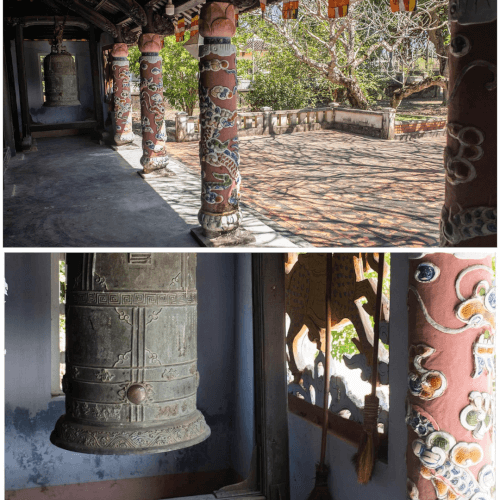 Một trong những bảo vật của chùa là quả đại hồng chung đúc năm 1819 dưới triều vua Gia Long. Chiếc chuông nặng gần 500kg,trên thân có khắc tên những người thợ và quan chức đương thời. Âm thanh ngân vang của chuông như nối liền quá khứ với hiện tại,mang đến cảm giác thiêng liêng và trầm lắng. Khi mình chạm tay vào chuông,có cảm giác như đang kết nối với một mạch ngầm văn hóa lâu đời.