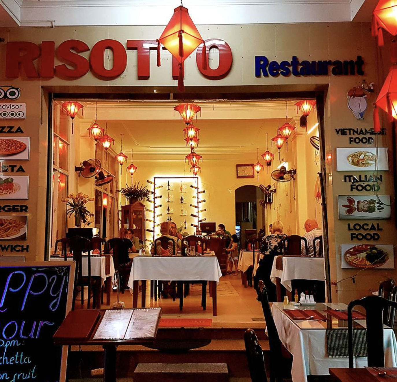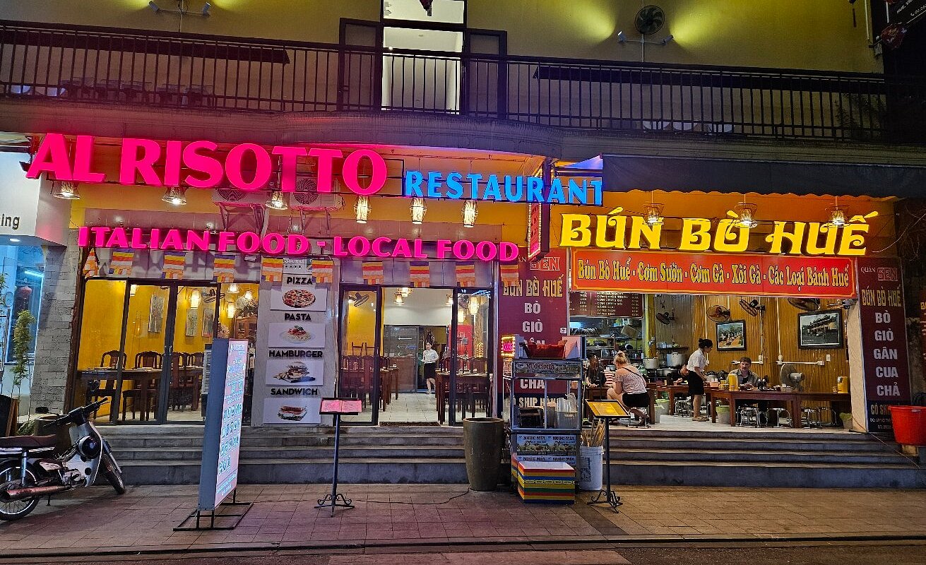 Một chuyến đi Huế không chỉ dừng lại ở việc khám phá di tích hay thăm các quán ăn truyền thống. Nếu bạn muốn tìm một điểm hẹn mang hơi thở châu Âu,Risotto Restaurant tại 69 Võ Thị Sáu,phường Phú Hội,thành phố Huế chính là nơi đáng để ghé qua. Nằm ngay khu vực sôi động của phố đi bộ,quán nổi bật với lối kiến trúc ấm cúng và hương vị ẩm thực Ý chuẩn vị.